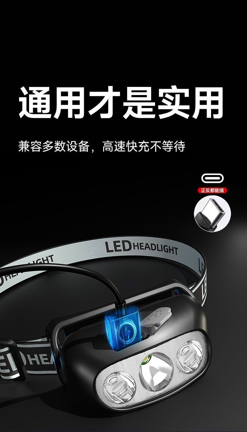 可攜式特亮可充電小型頭戴式強光夜釣魚燈頭燈手電筒超亮感應