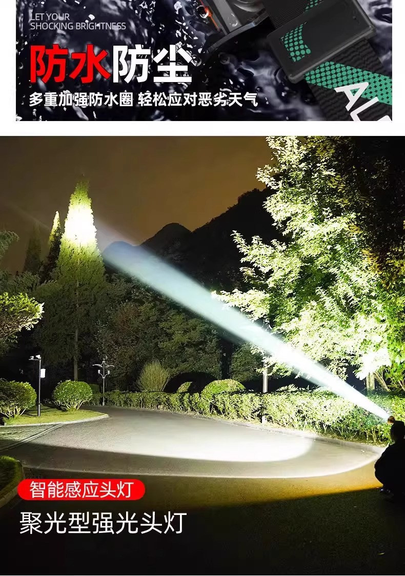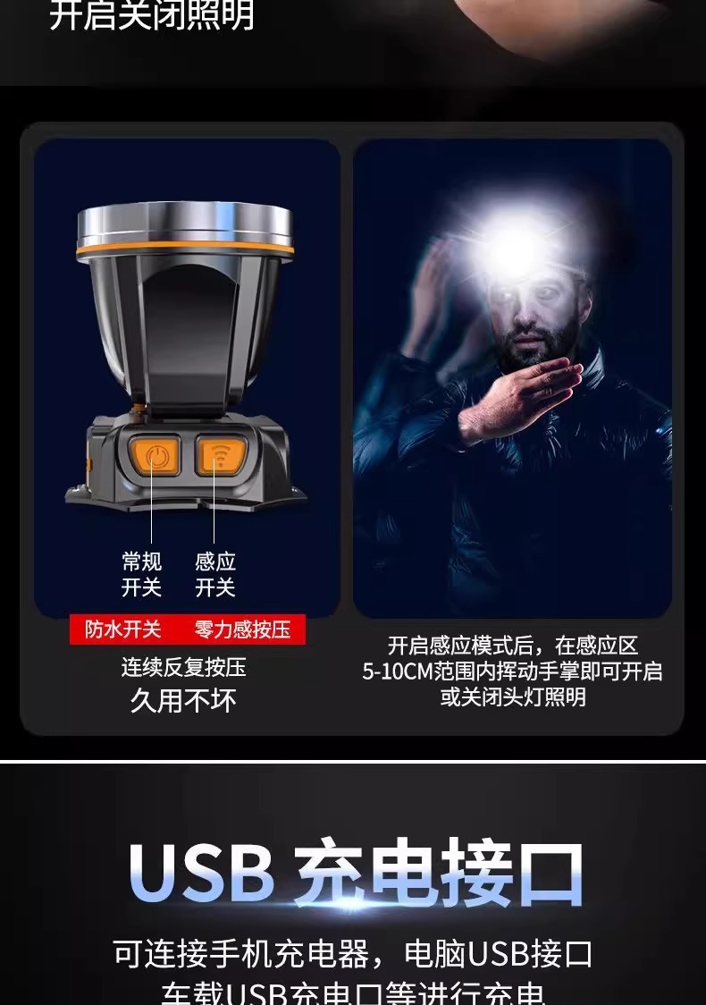 2025新款頭燈超長續航頭戴式戶外照明礦燈釣魚強光強亮手電筒