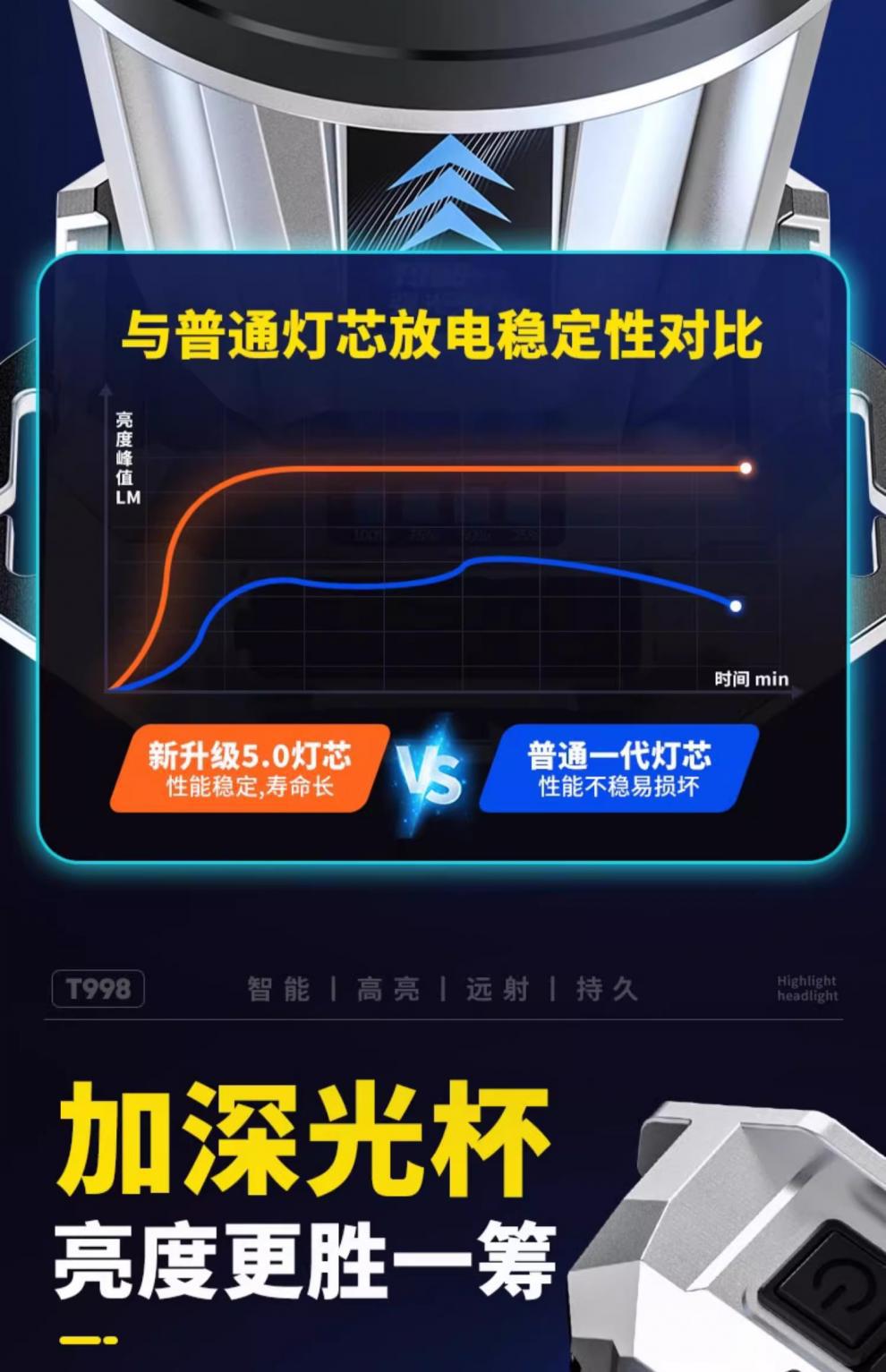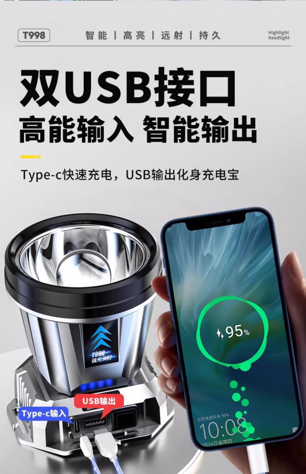 頭燈頭戴式強光充電超亮釣魚超長續航鋰電手電筒礦燈感應夜蒔
