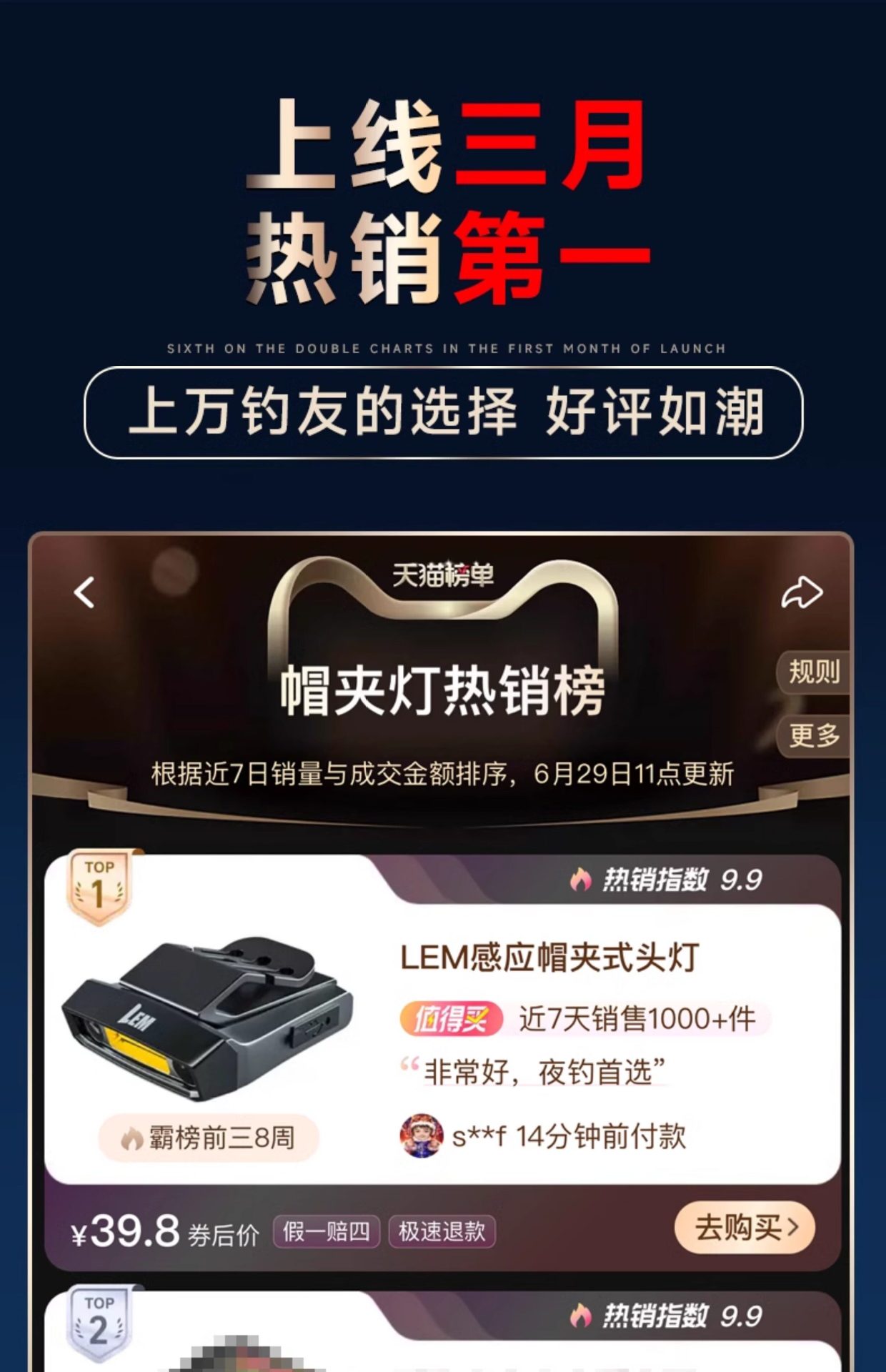 LEM頭燈釣魚用感應帽夾燈強光超亮充電頭戴夾式超長續航夜釣燈