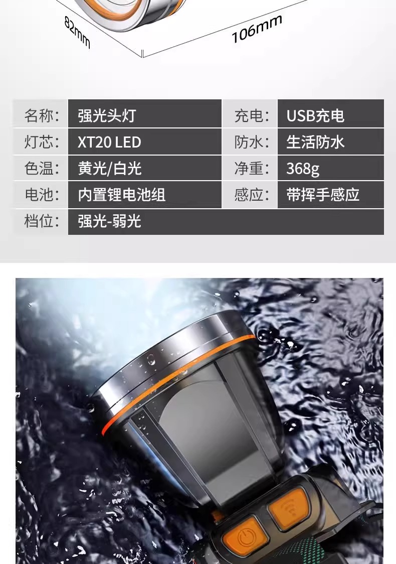 | 顔色 | T120黃光-亮超800W【800小時】雙鋰電/USB快充/揮手感應 |