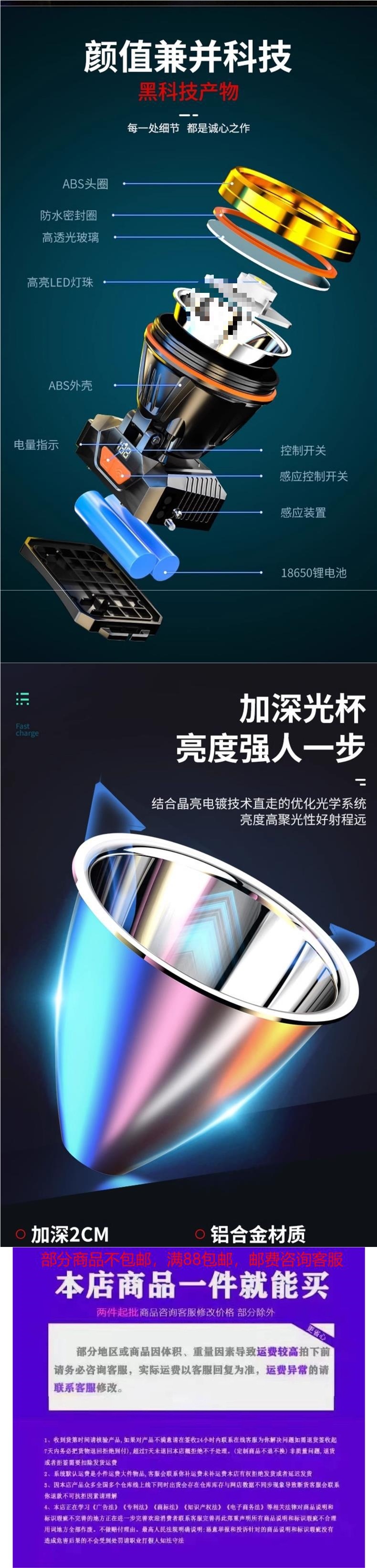 | 顔色 | 雙鋰電99800W黃光【600小時】數顯+帶感應+帶輸出【更大光斑】 配用頭繩+數據線 |