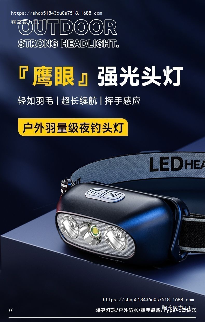 頭燈超亮可充電頭戴式強光感應特亮手電筒小型可攜式夜釣魚燈