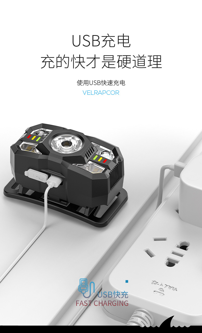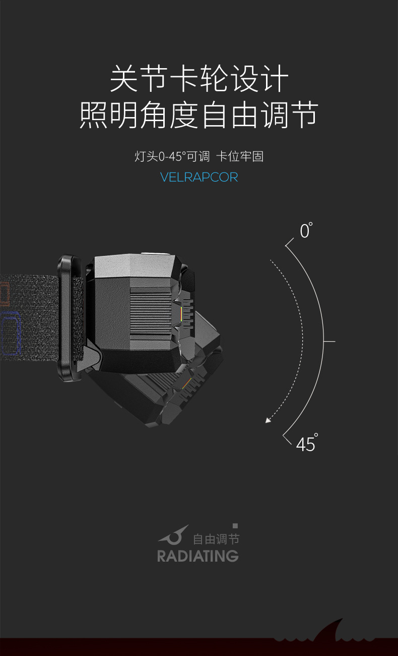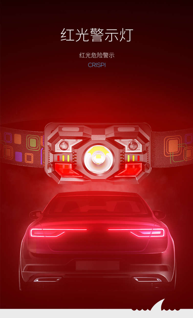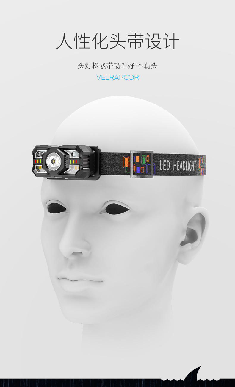 微笑鯊強光感應頭燈感應頭戴式夜釣可充電式長續航照明燈
