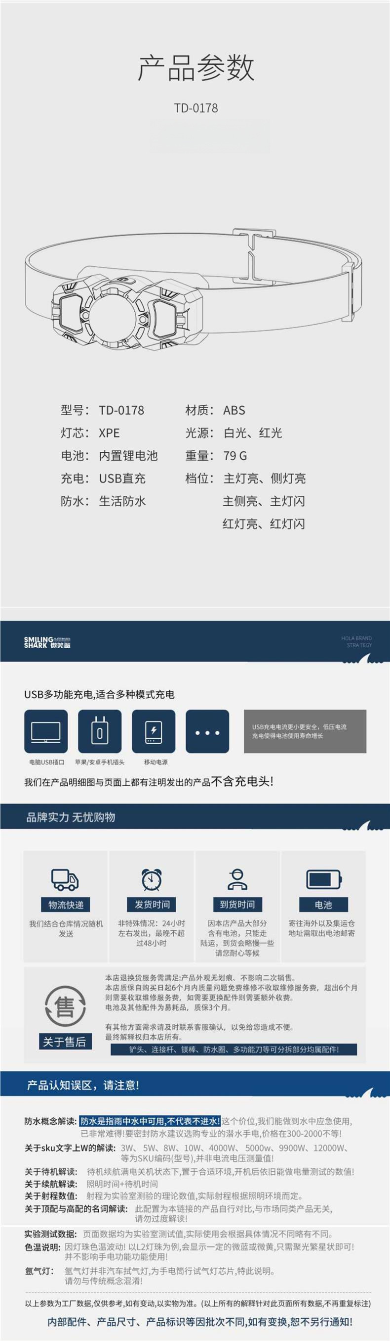 py微笑鯊頭燈強光充電超亮頭戴式釣魚照明超長續航感應夜釣燈