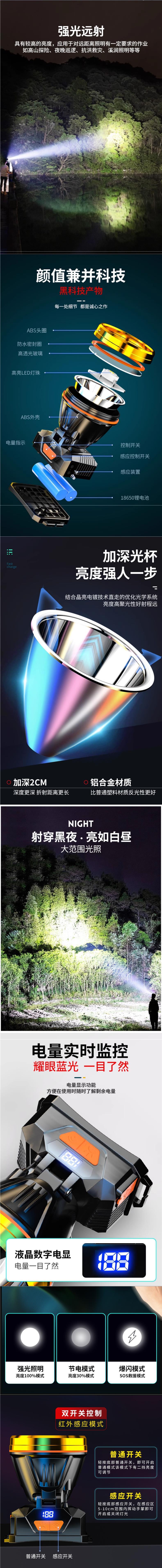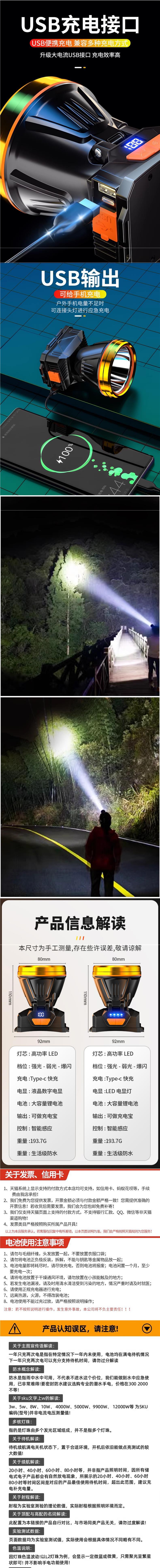 | 顔色 | 雙鋰電99800W黃光【600小時】數顯+帶感應+帶充手機【更大光斑】 配用頭繩+數據線 |
