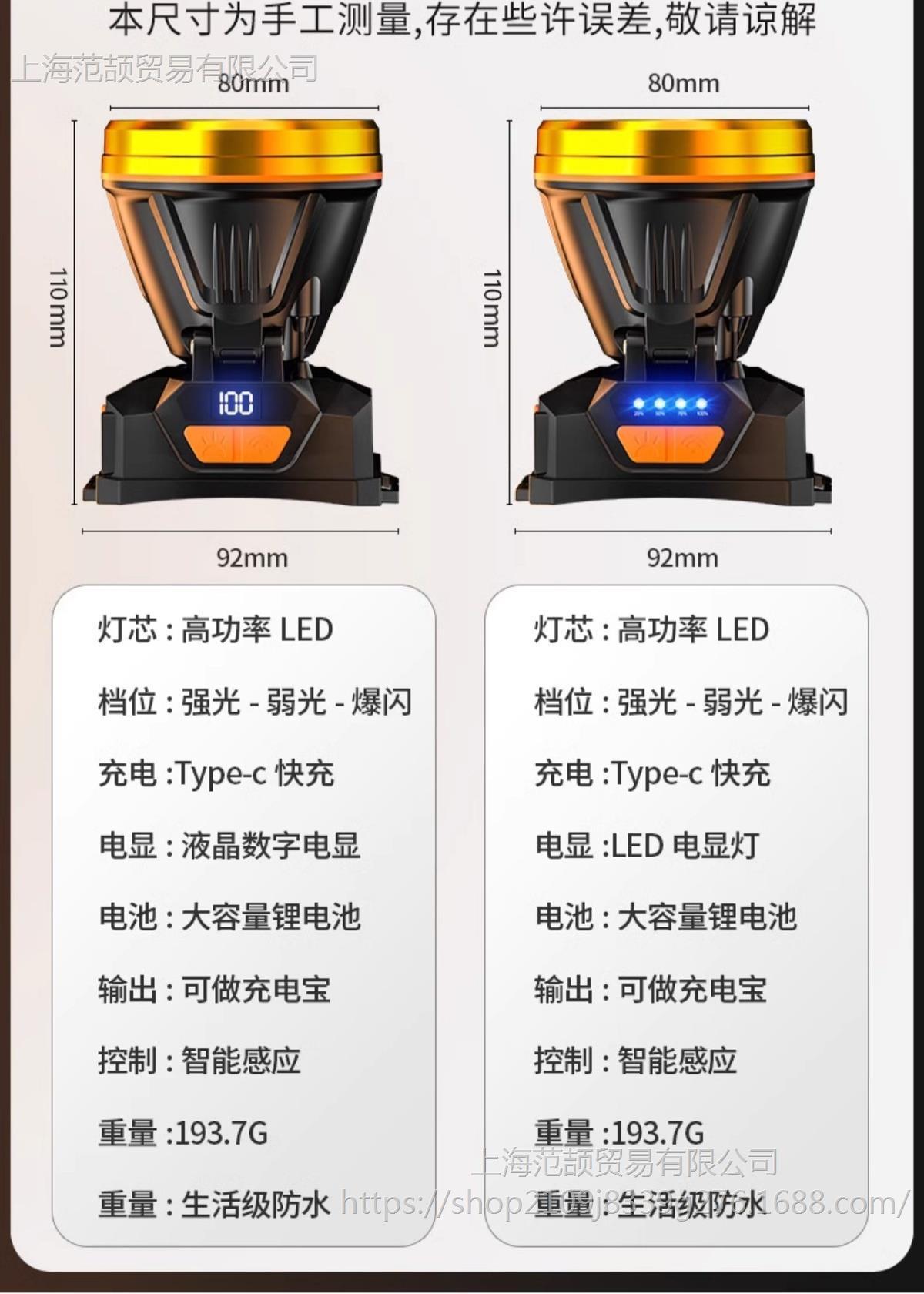 | 顔色 | 雙鋰電99800W黃光【600小時】數顯+帶感應+帶輸出【更大光斑】 配用頭繩+數據線 |