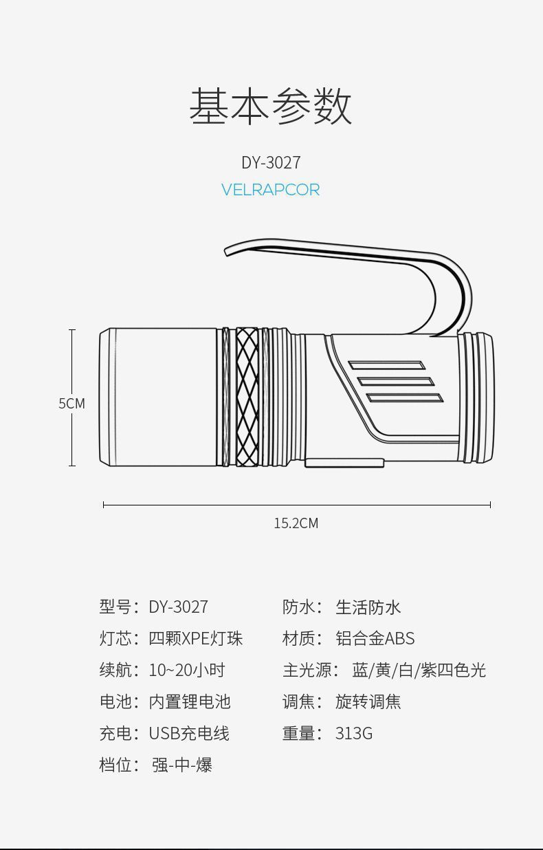 顔色 【機械旋轉變焦-智能電顯-超長續航】-強光釣魚燈【白藍紫黃】支架+頭燈