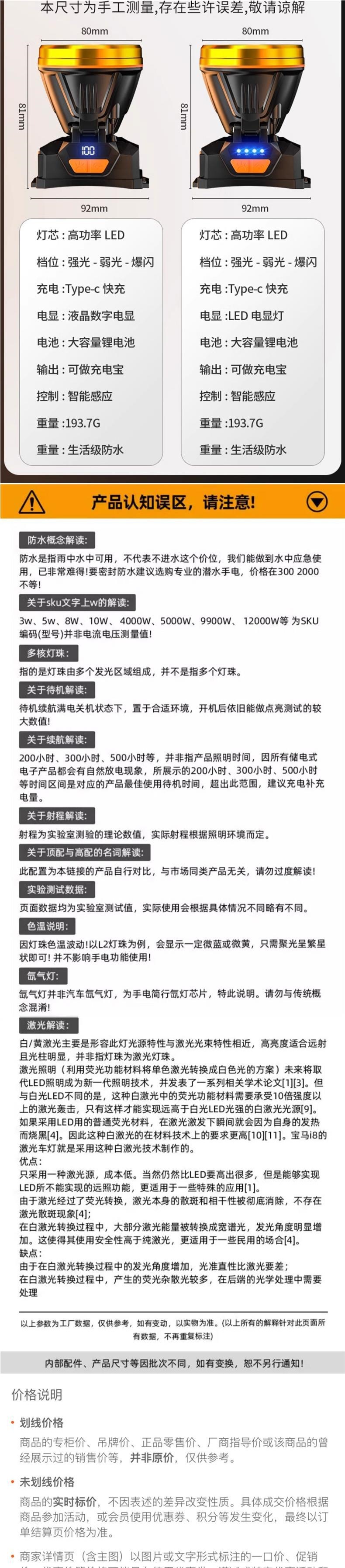 | 顔色 | 99800W黃光【600小時】數顯+感應+充手機【更大光斑】 |