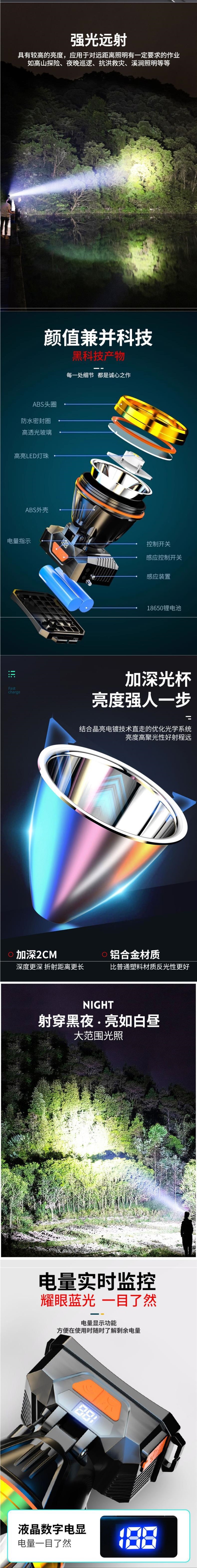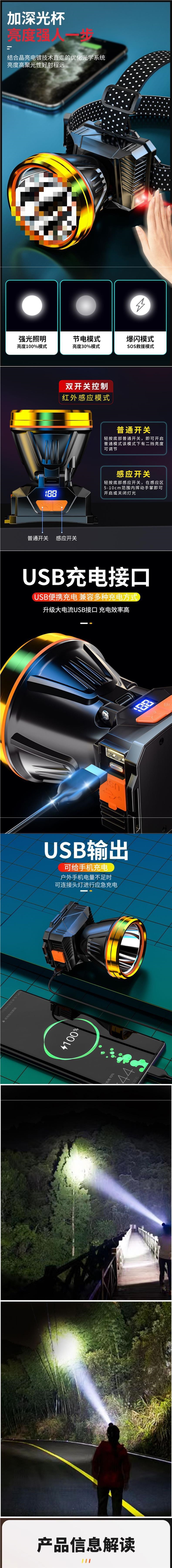 頭燈強光超亮充電頭戴式照明燈超長續航手電筒鋰電夜釣魚礦燈