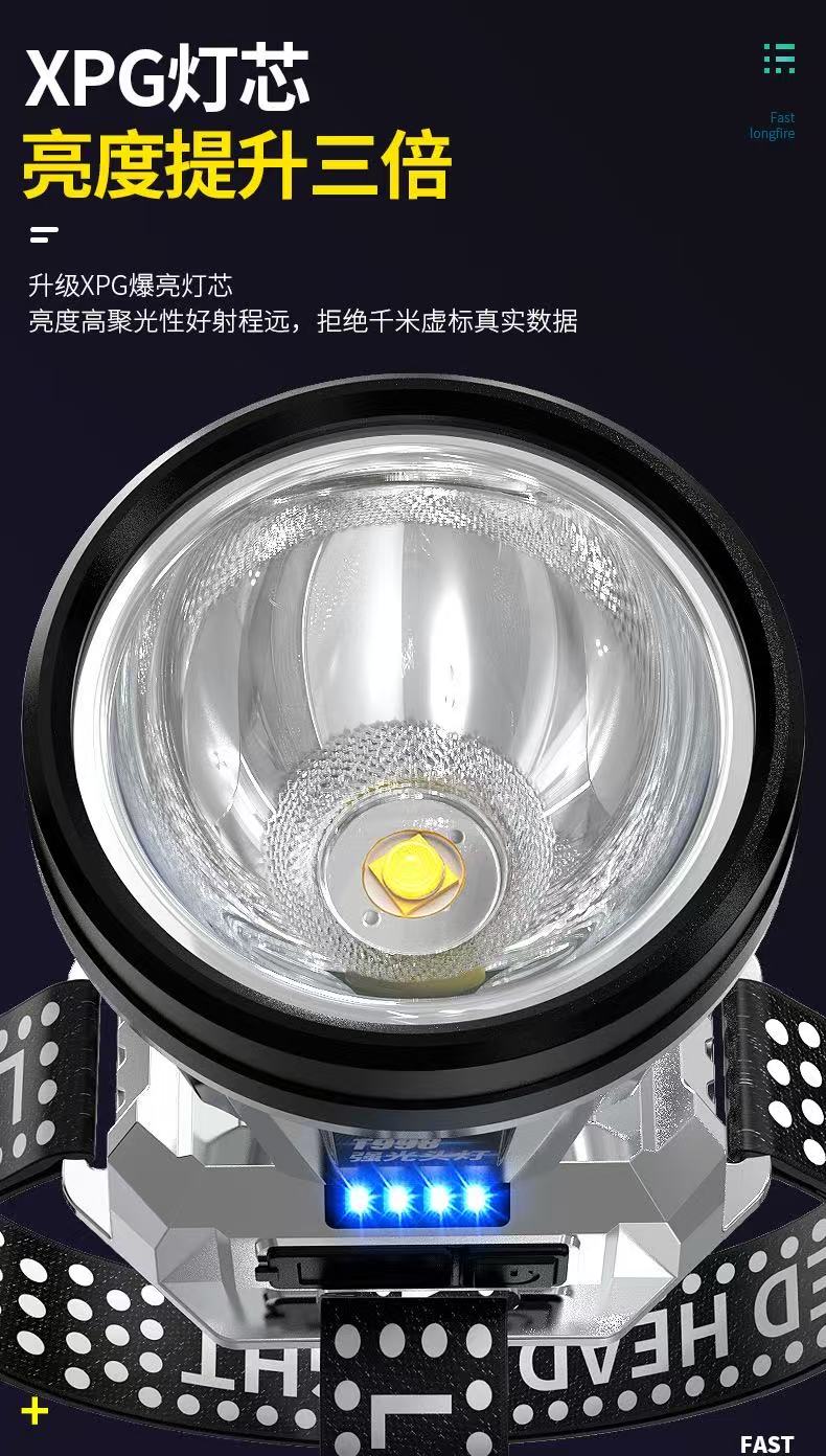 超強續航爆亮LED強光超亮可充電頭戴式手電筒夜釣家用工作頭燈