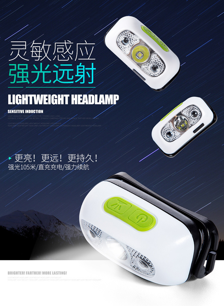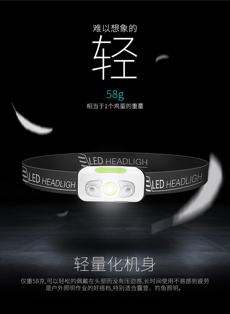 頭燈釣魚感應燈強光充電戶外照明揮手開關強弱防水夜釣燈