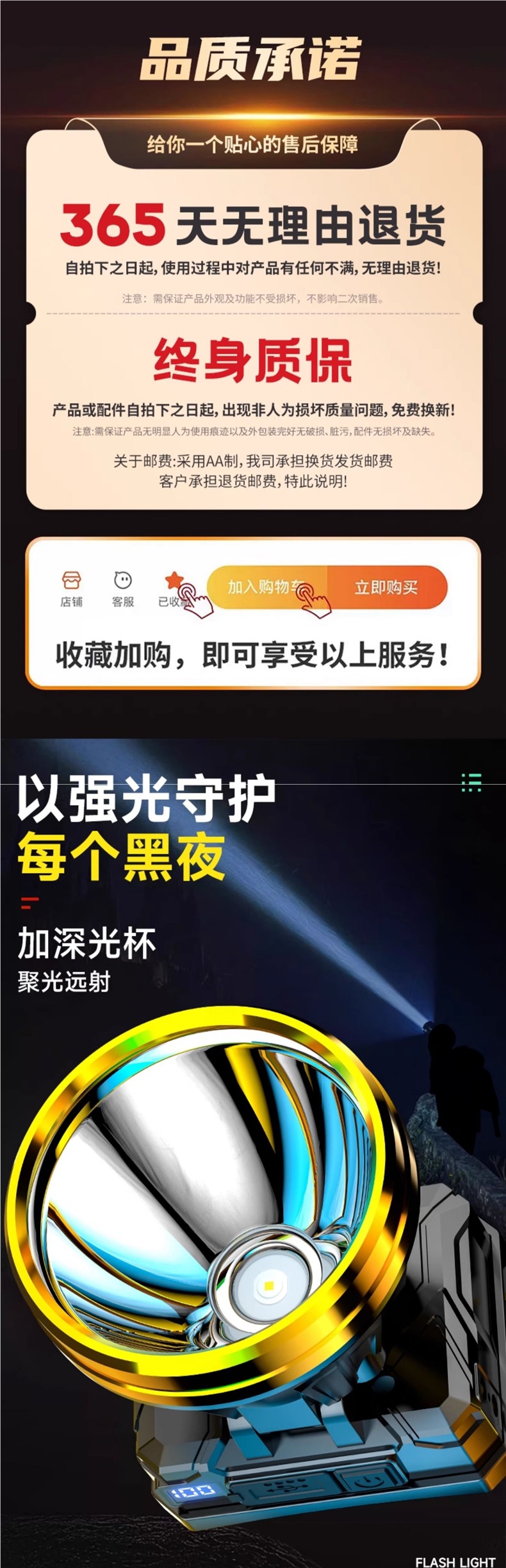 | 顔色 | 數顯黃光雙鋰電 強光續航8-10小時 帶感應有輸出 8公分大口徑 |