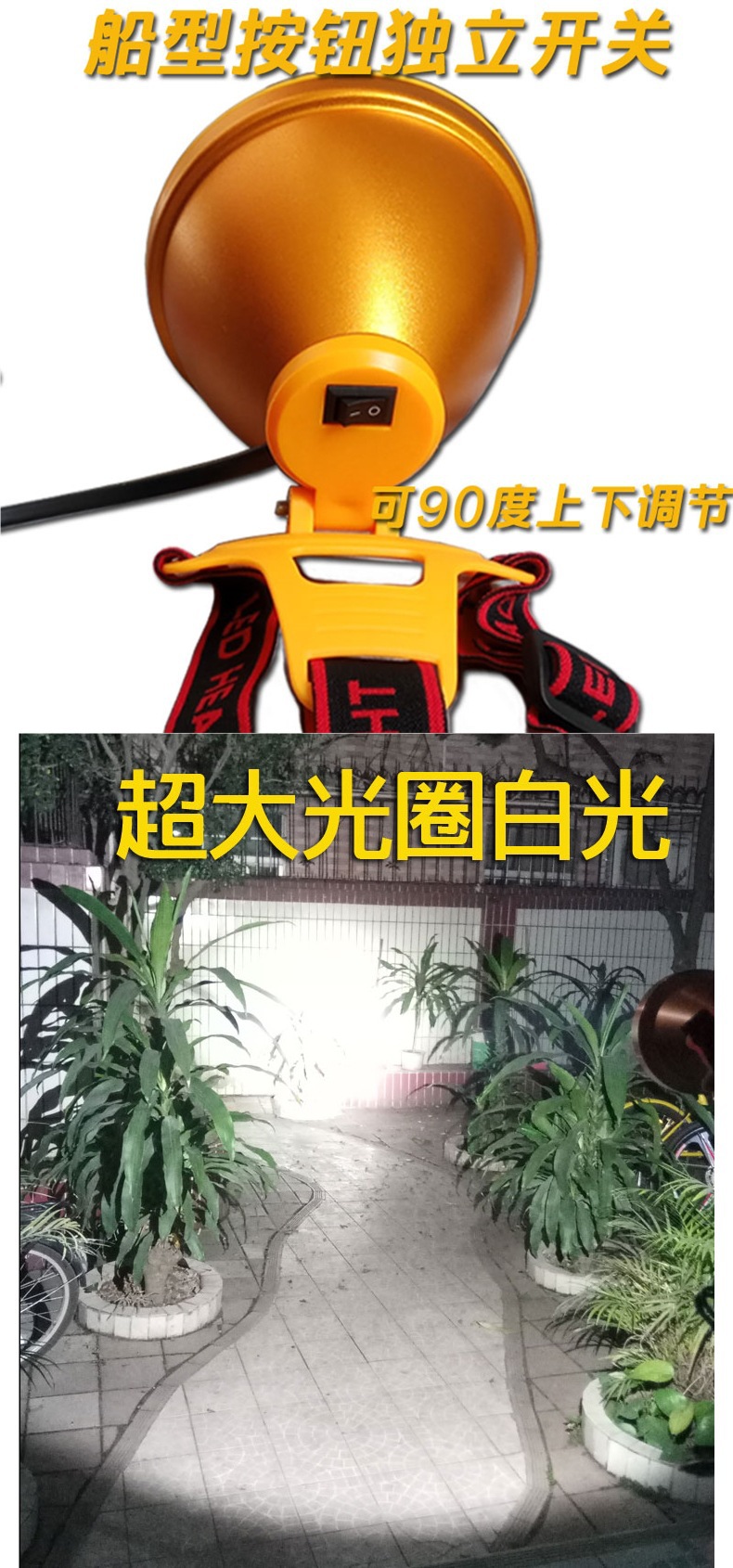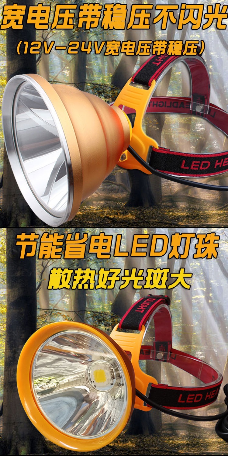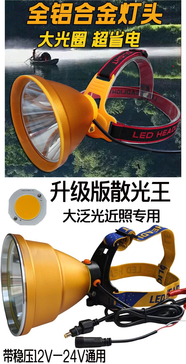12v散光頭燈led強光超亮遠射大光圈抓黃鱔螞蟥黃光外接夾電瓶