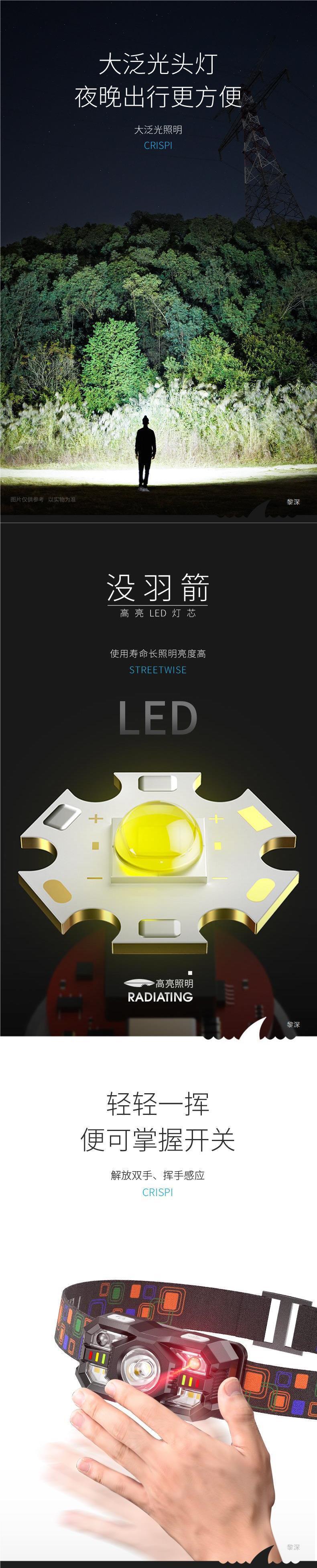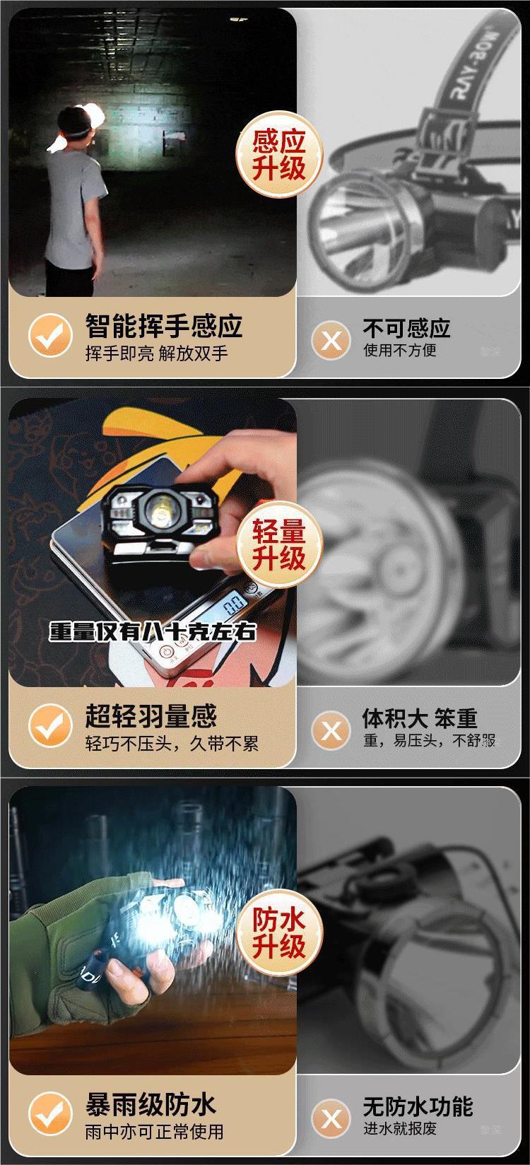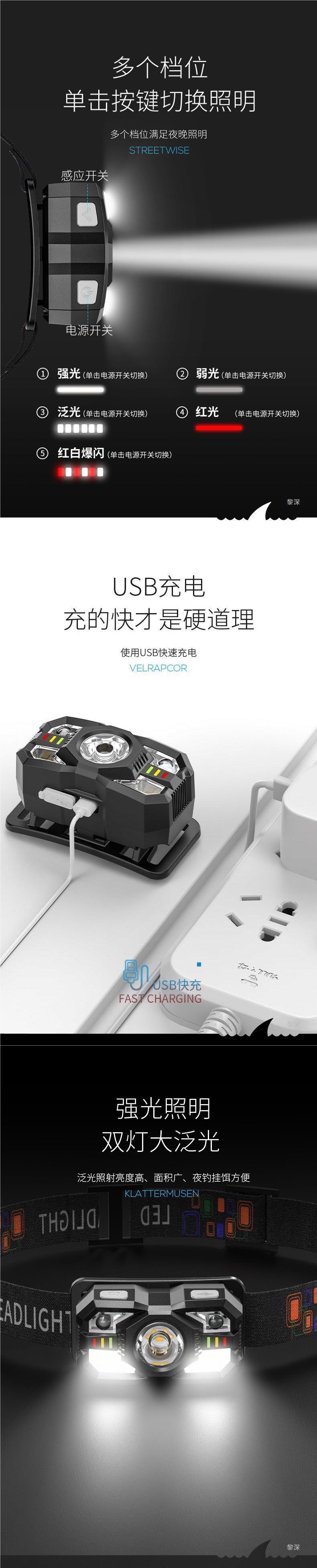 強光感應頭燈夜釣魚戶外可充電超亮長續航頭戴式小手電筒鋰電紅光