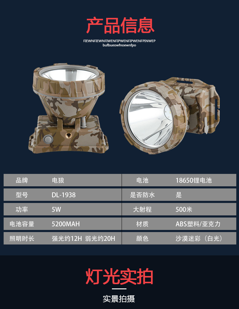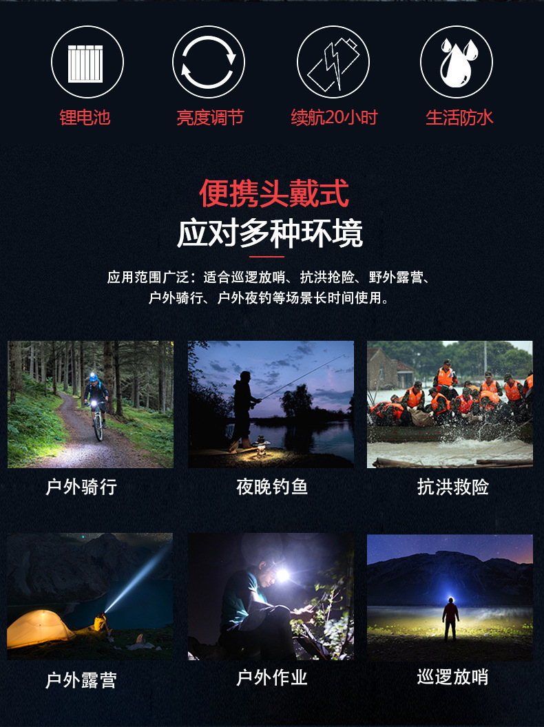 led強光遠射燈戶外夜行照明野外釣魚燈執勤燈露營照明燈頭燈