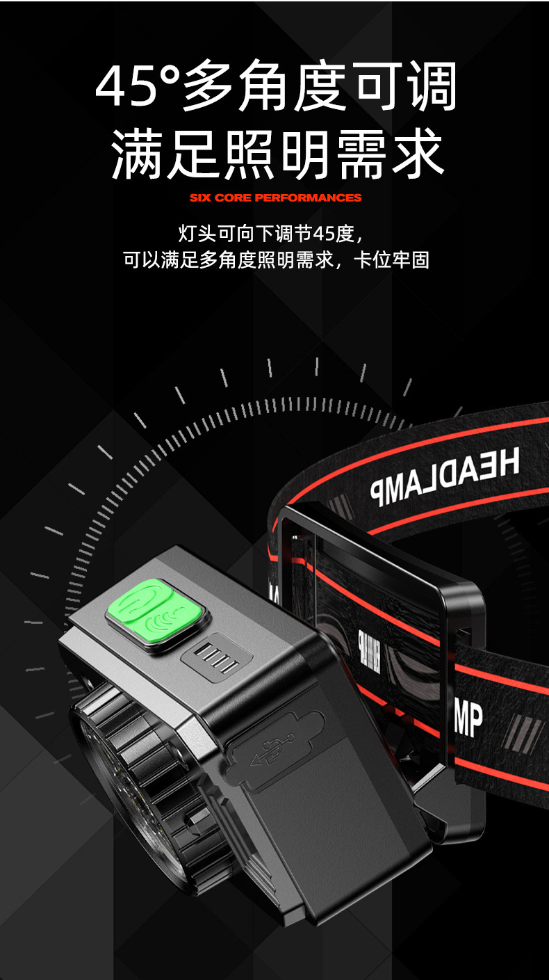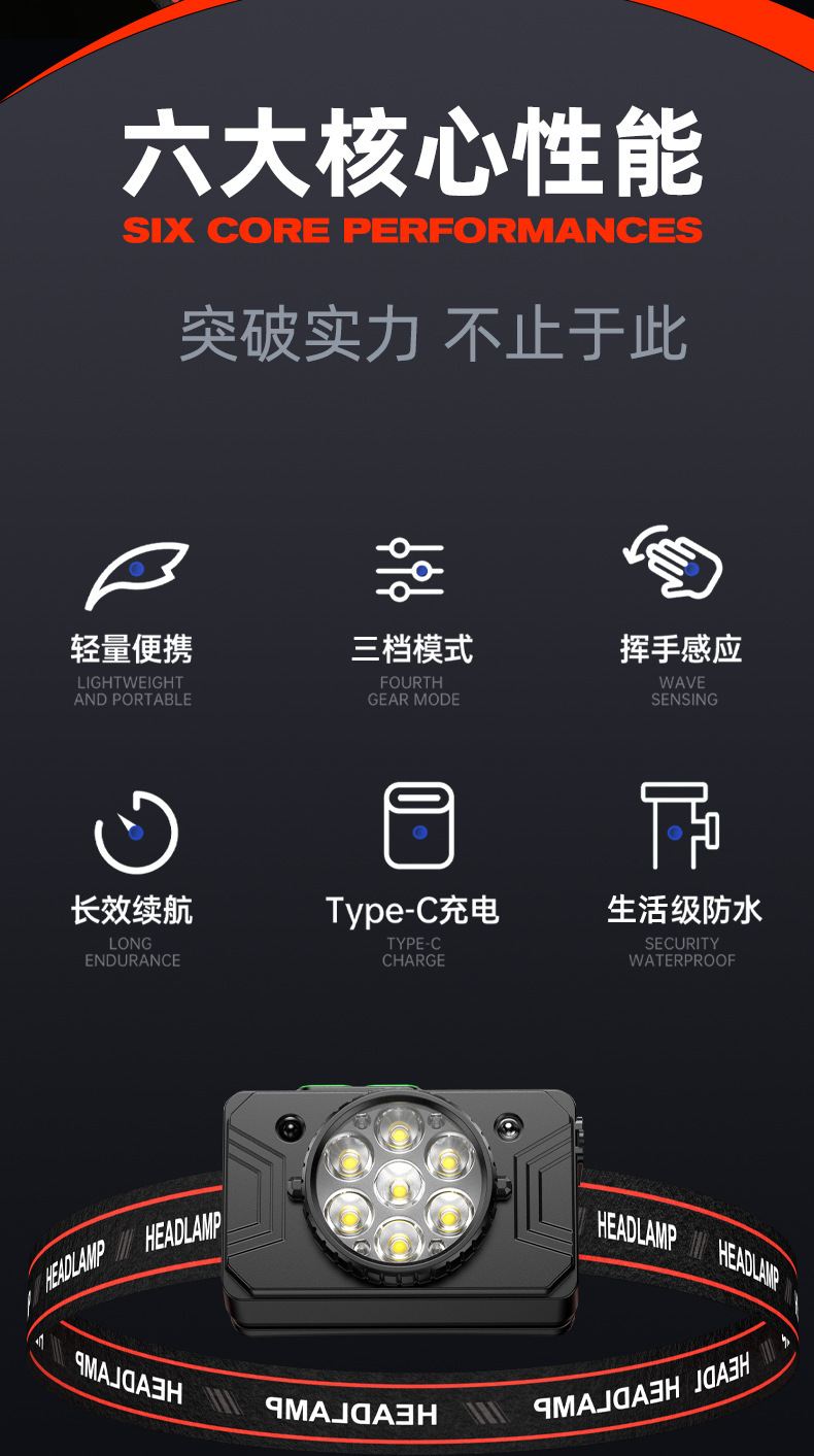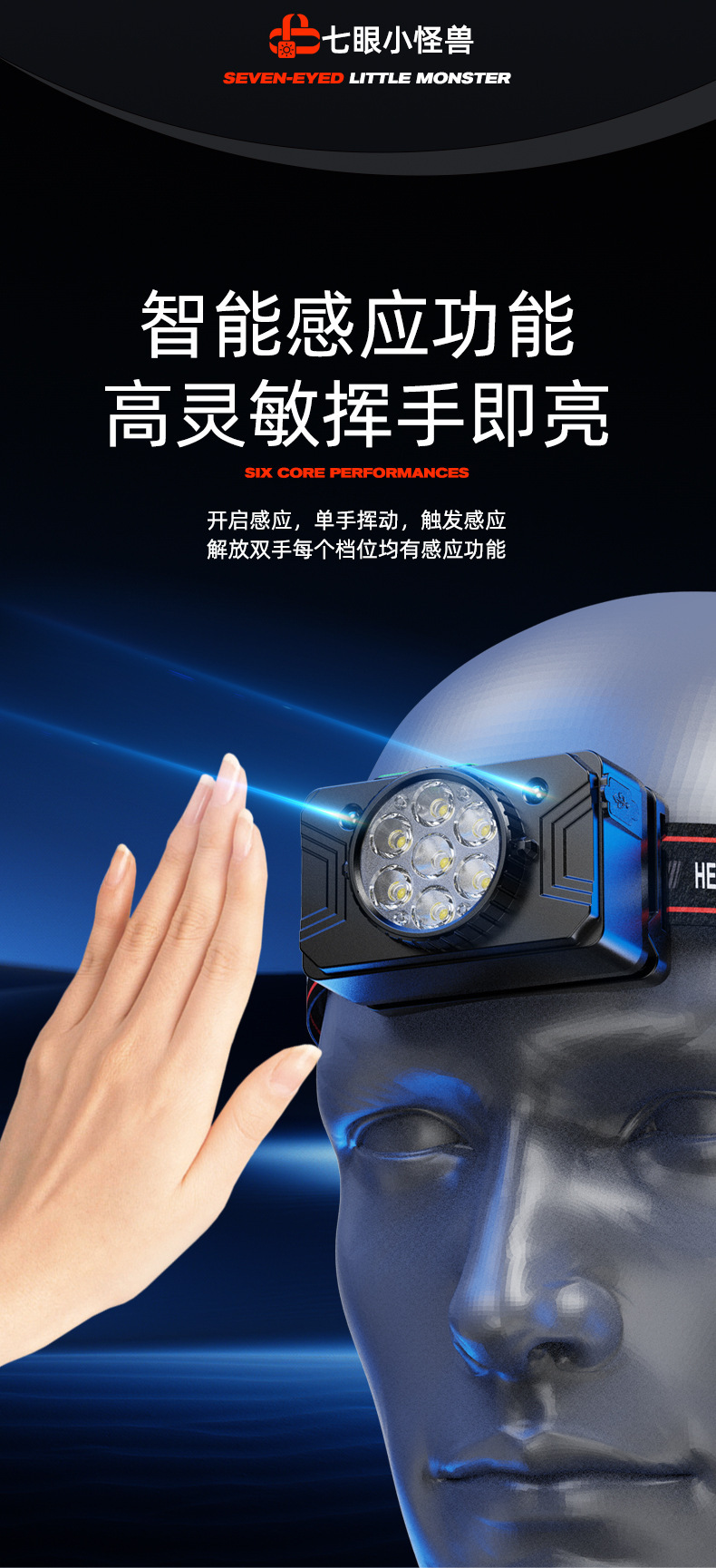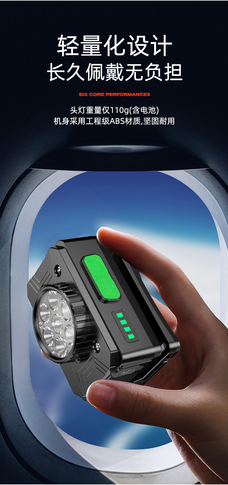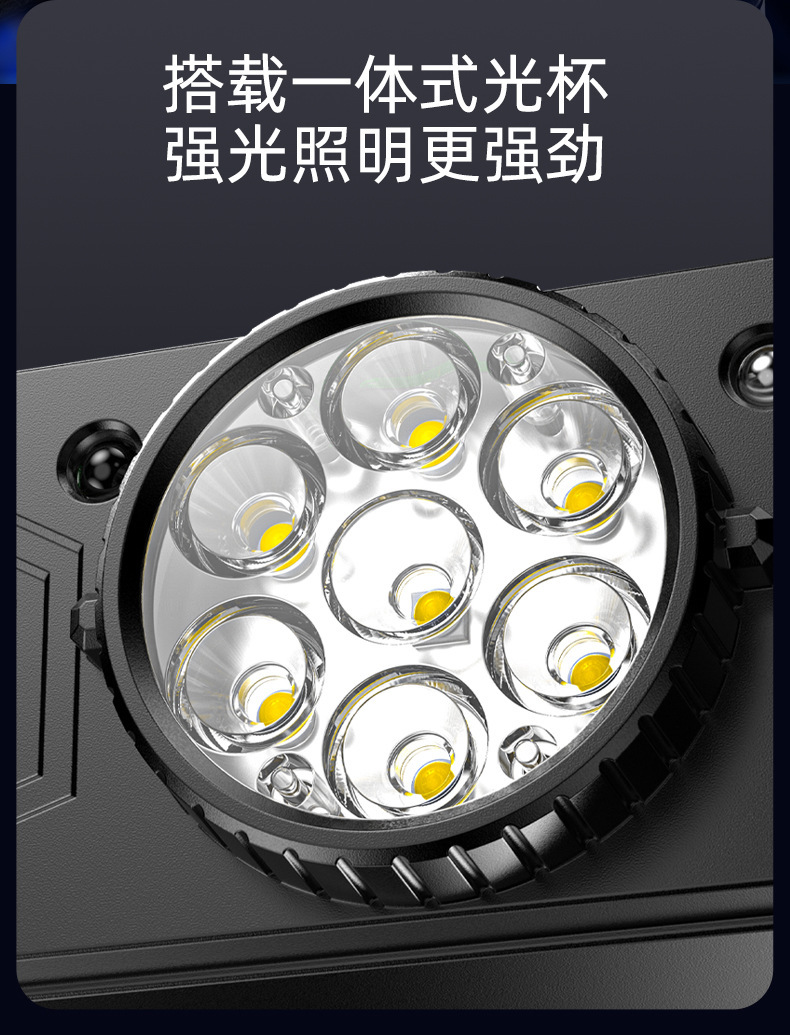 七孔爆亮強光頭燈揮手感應大功率遠射燈芯戶外夜騎跑步頭燈