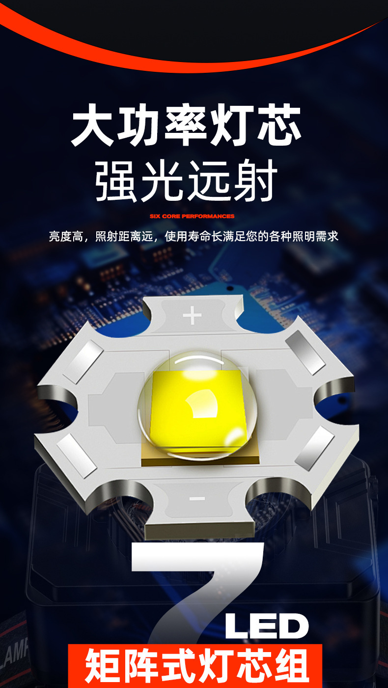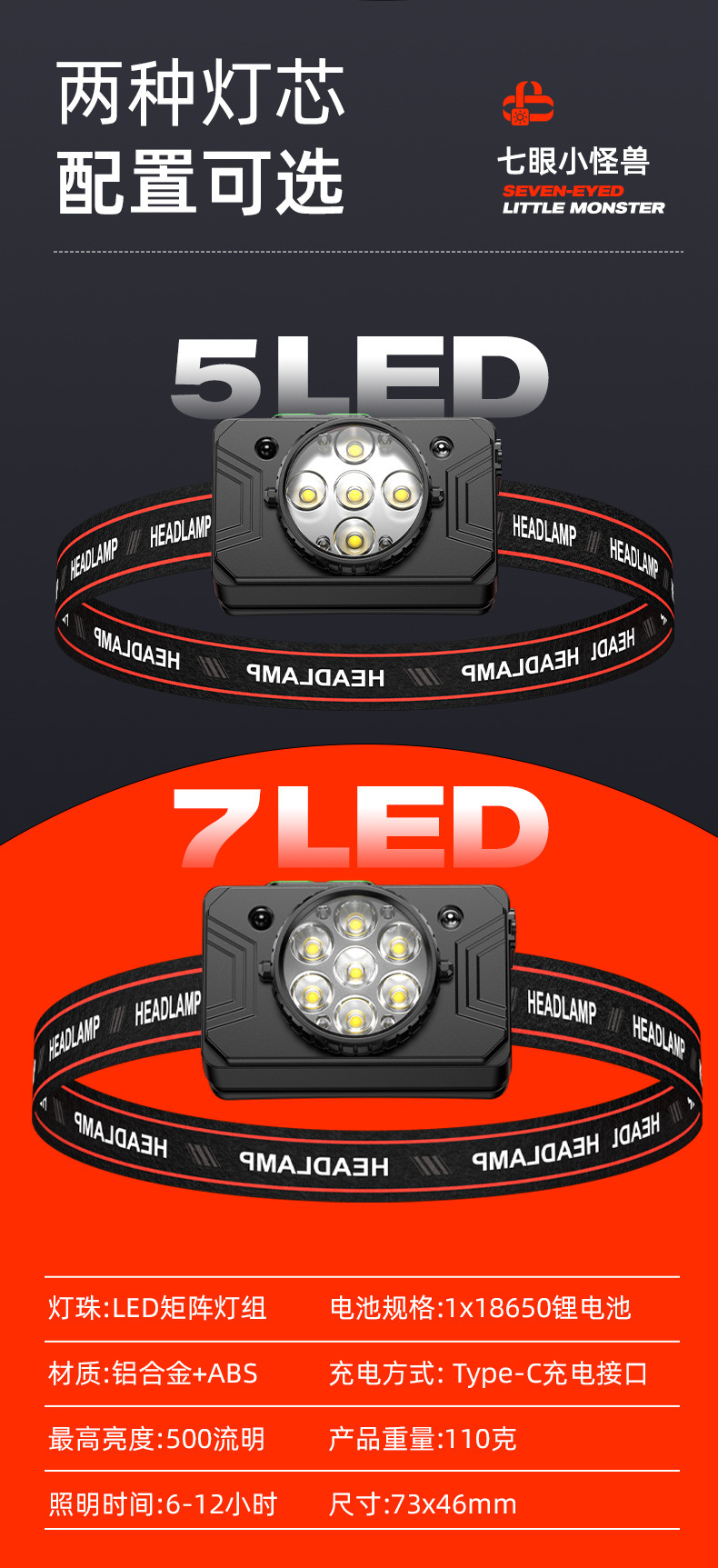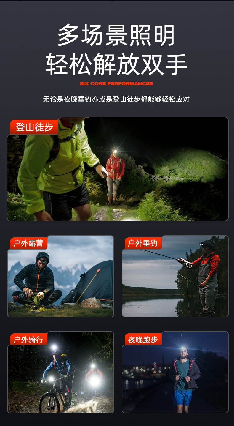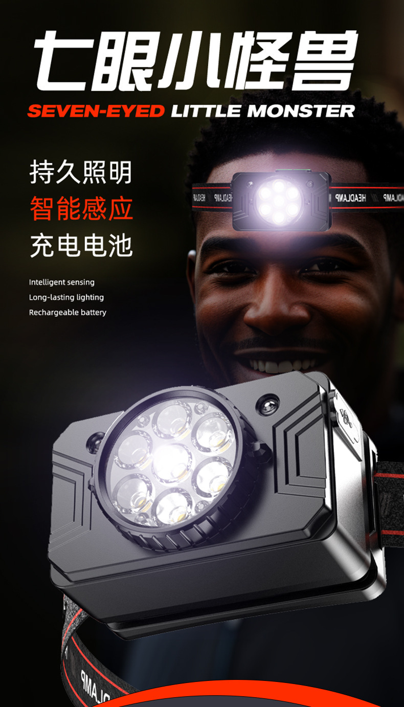 七孔爆亮強光頭燈揮手感應大功率遠射燈芯戶外夜騎跑步頭燈