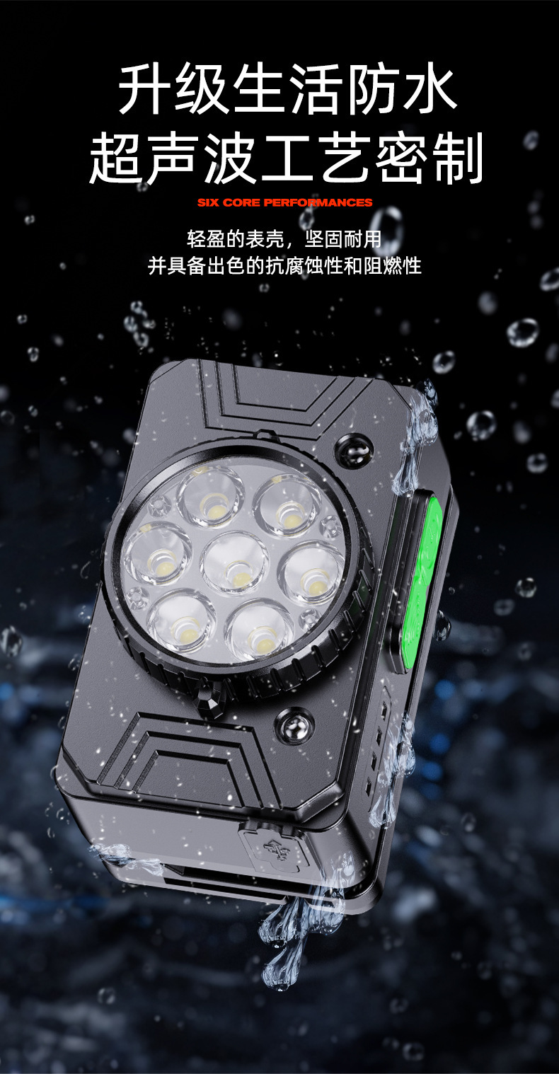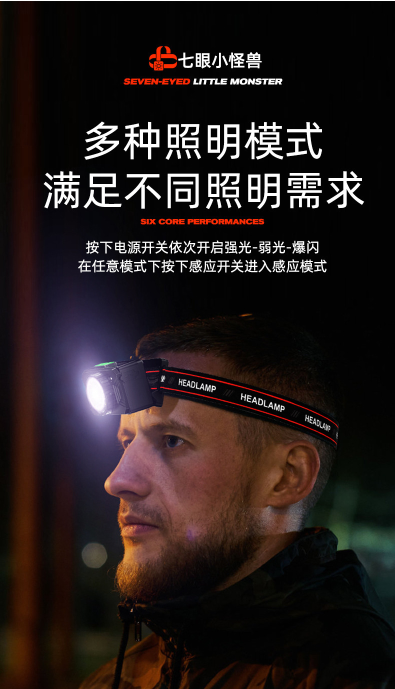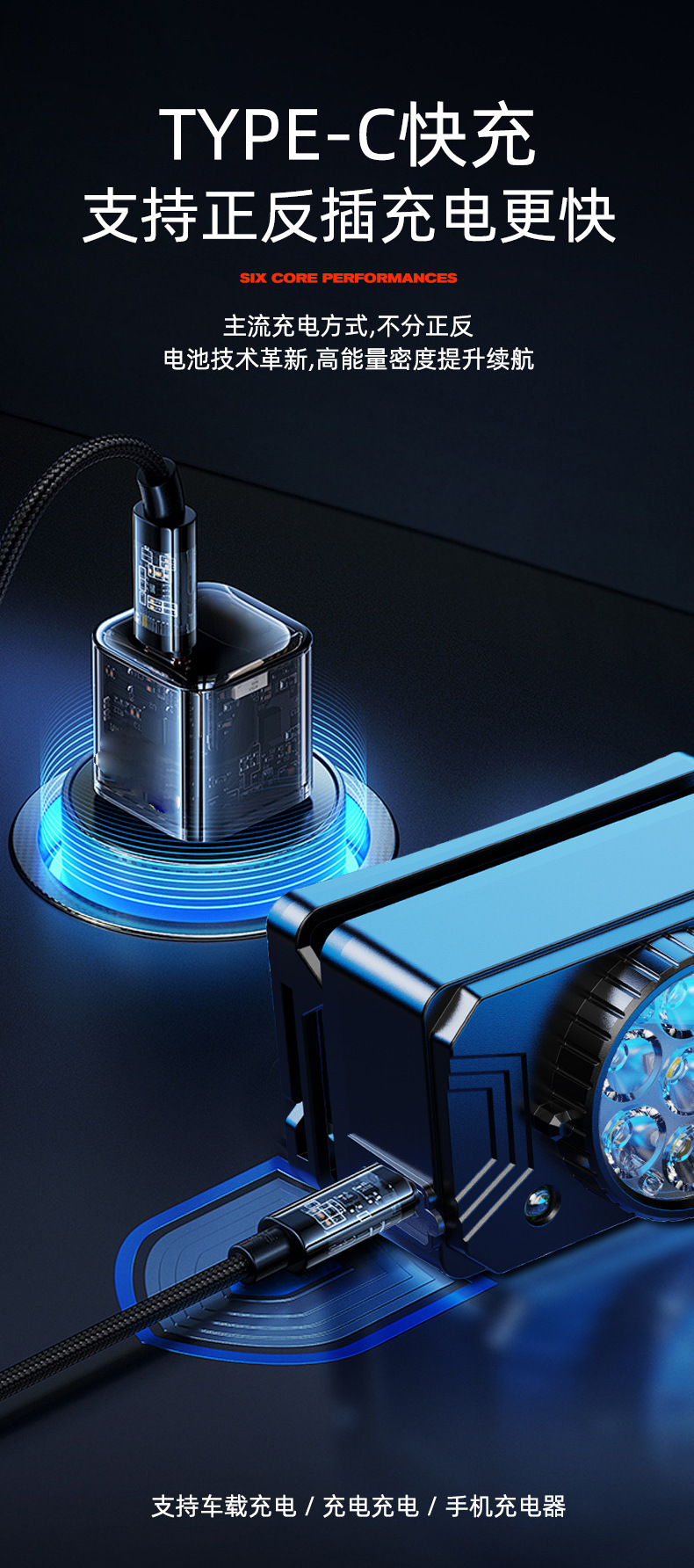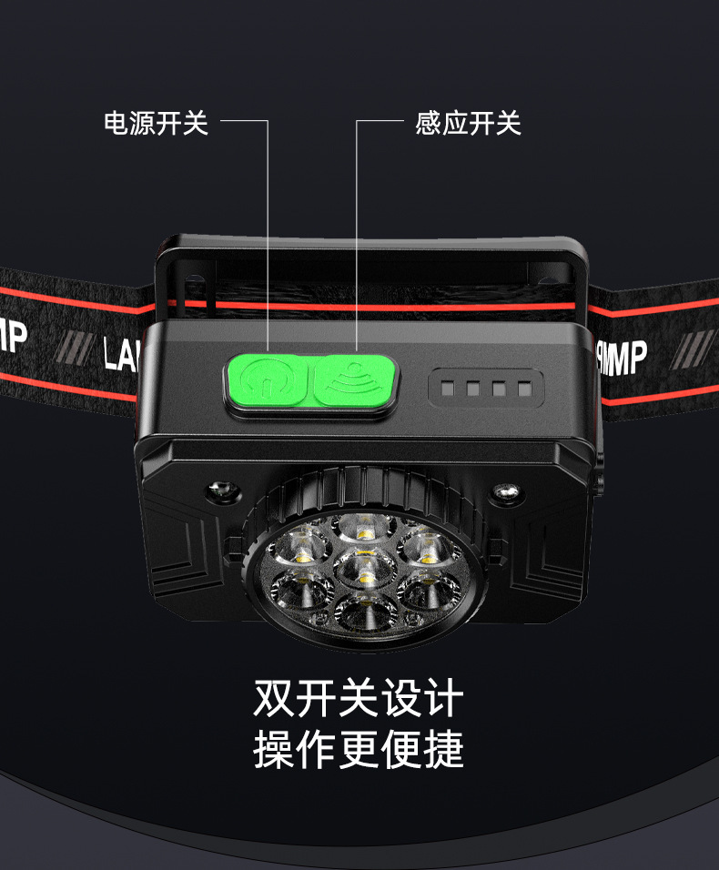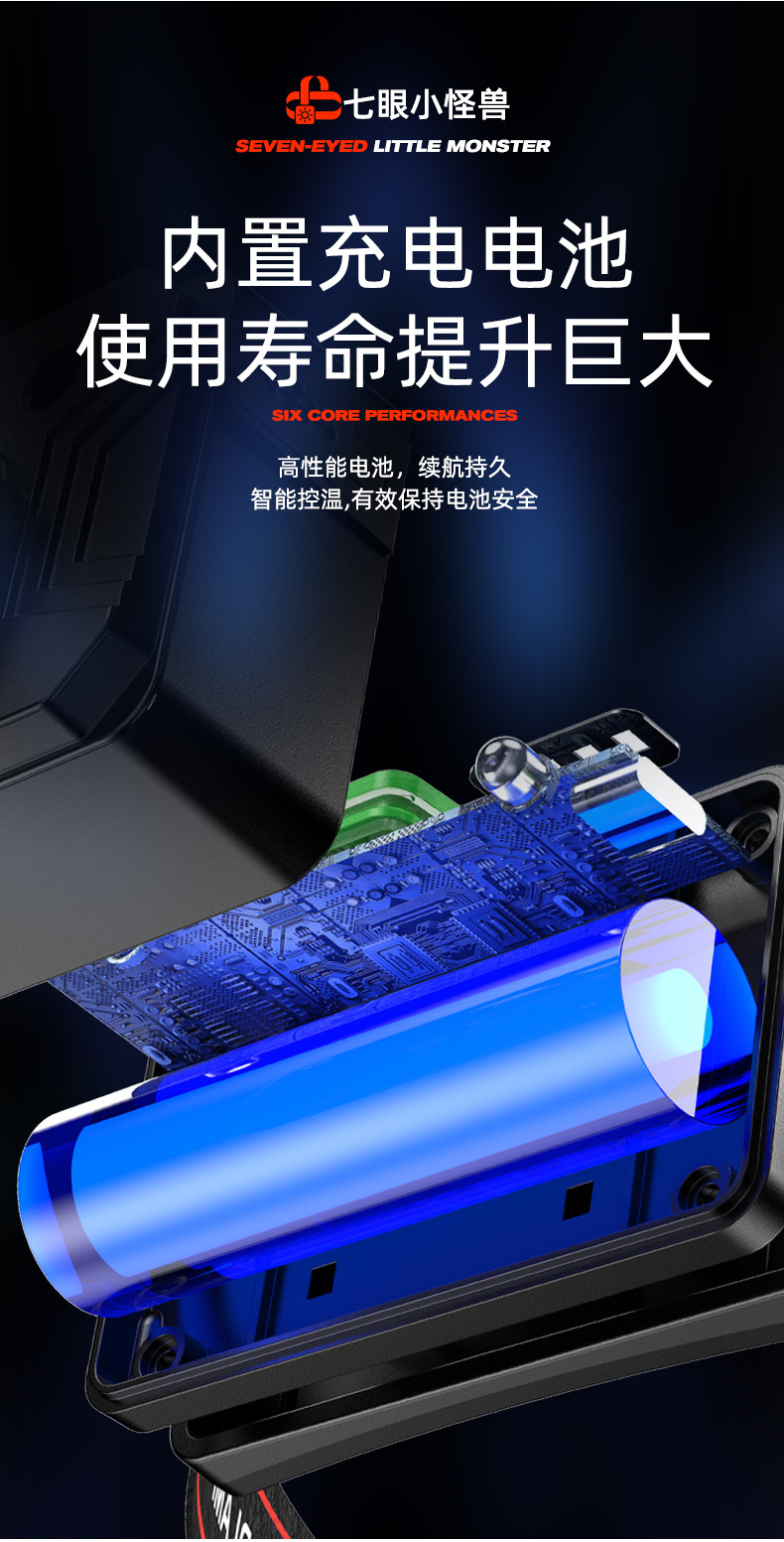 七孔爆亮強光頭燈揮手感應大功率遠射燈芯戶外夜騎跑步頭燈