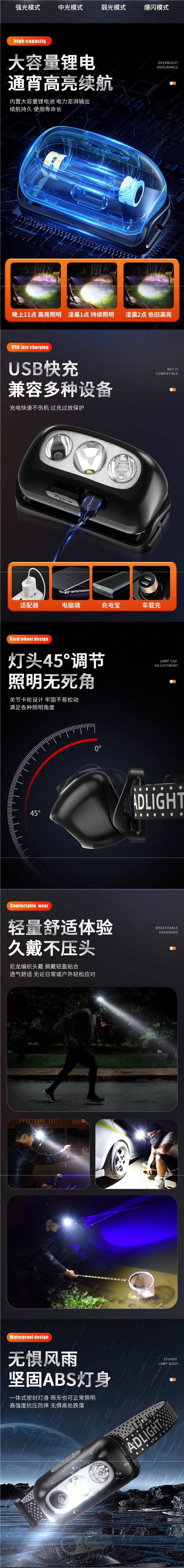 頭燈強光充電超亮頭戴式夜釣魚照明戶外超長續航超輕感應小手電筒
