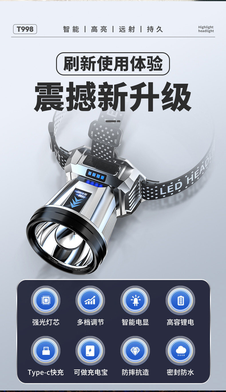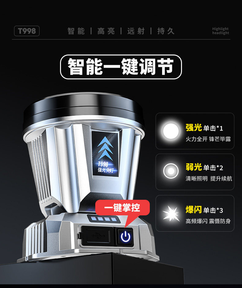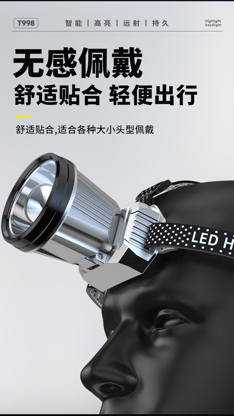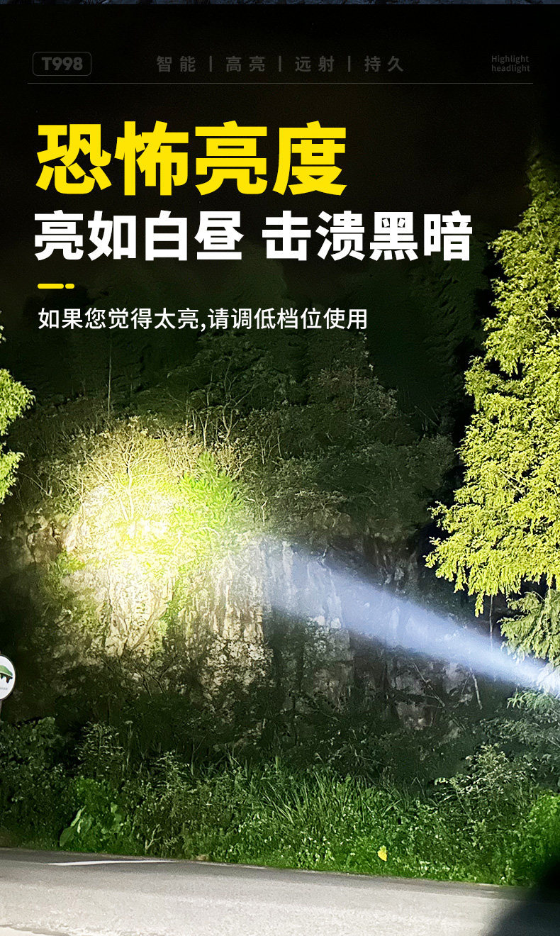 強光鋰電感應充電續航夜釣頭燈頭戴式超長超亮礦燈用釣魚手電筒