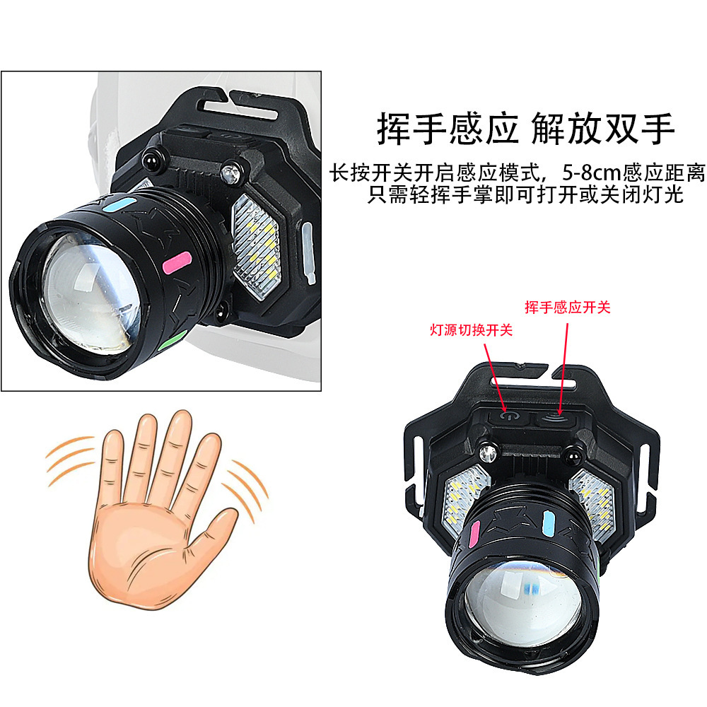 戶外照明強光釣魚燈適配米奇fast盔戰術鋁合金伸縮頭燈