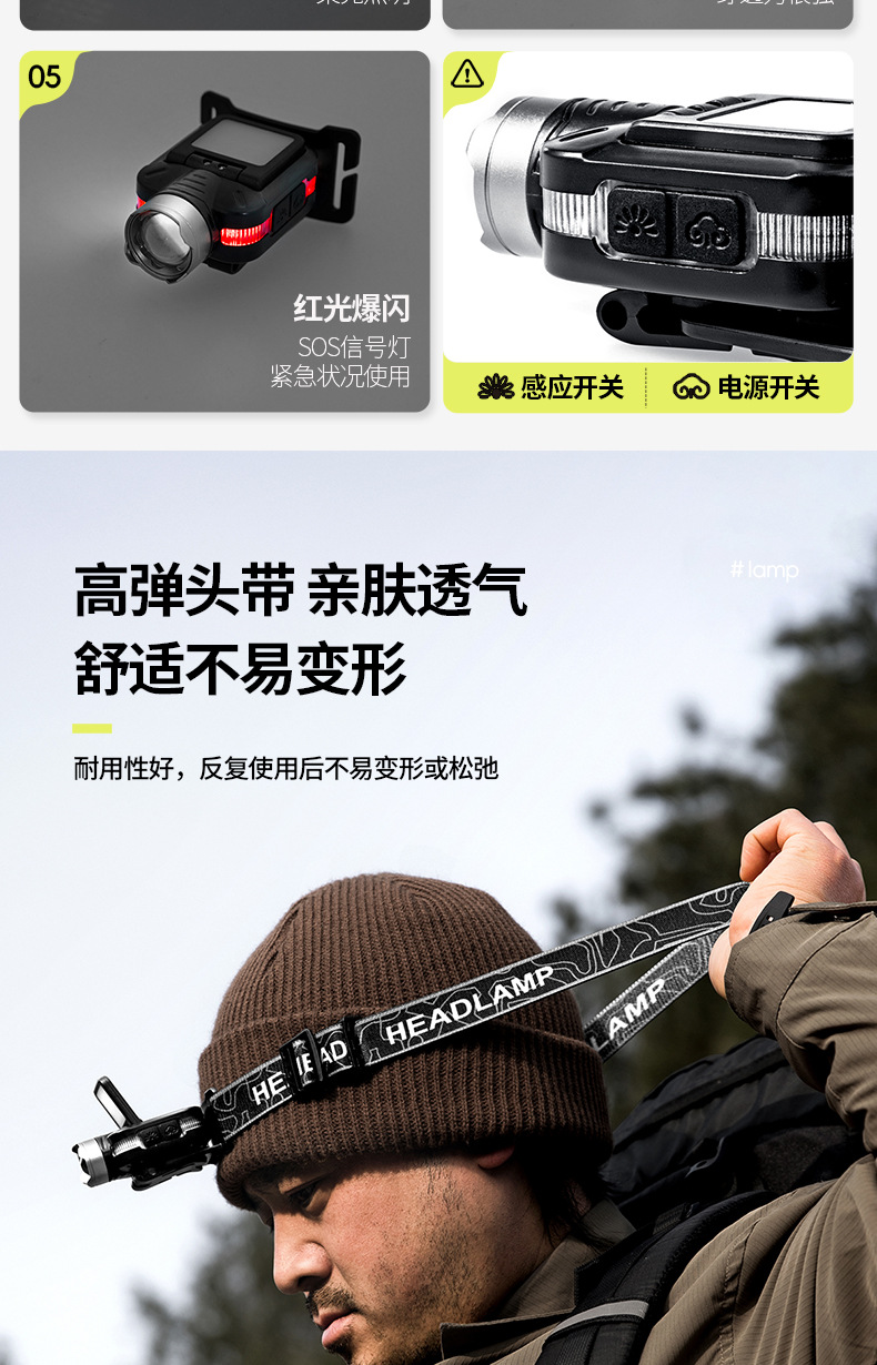 頭燈新款強光超亮超長續航頭戴式釣魚專用戶外登山充電野外照明燈