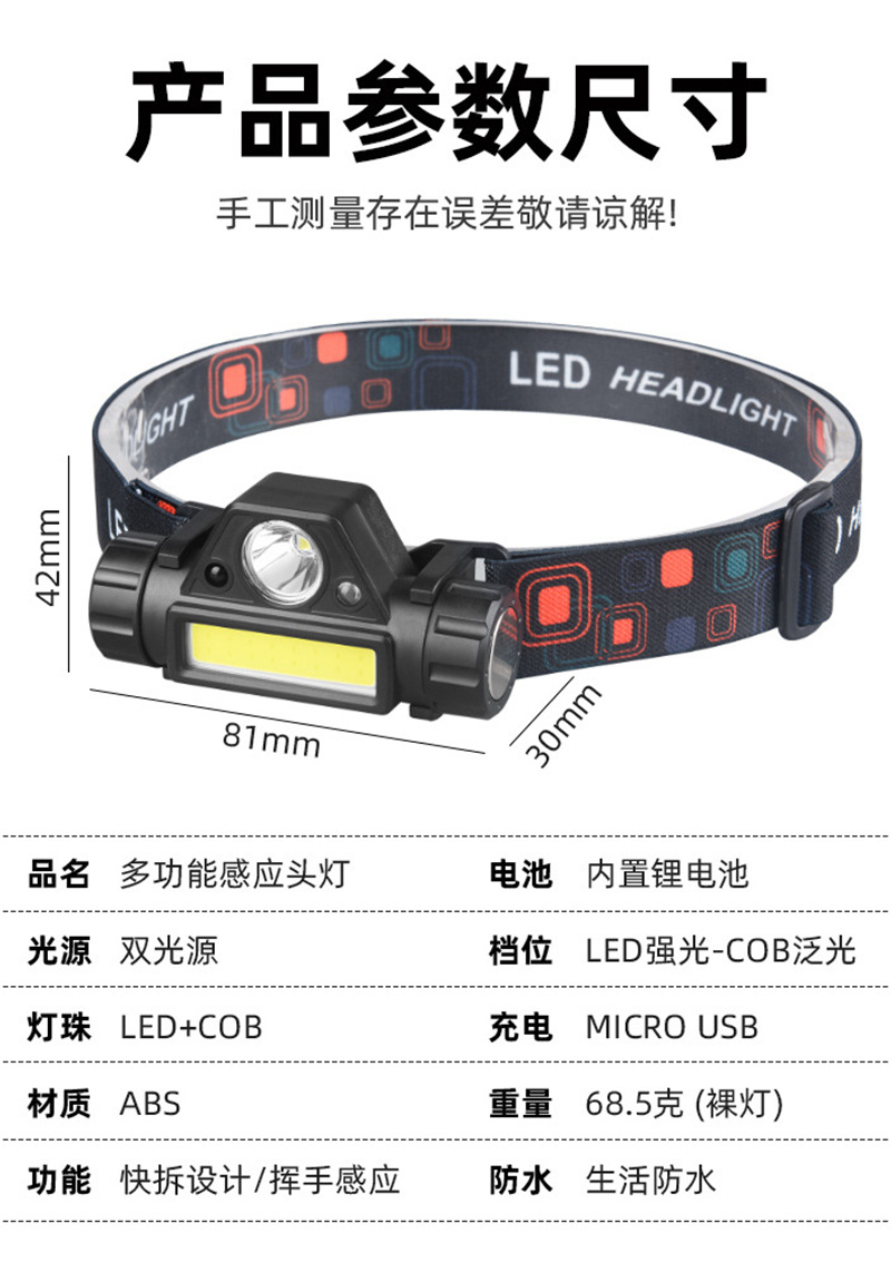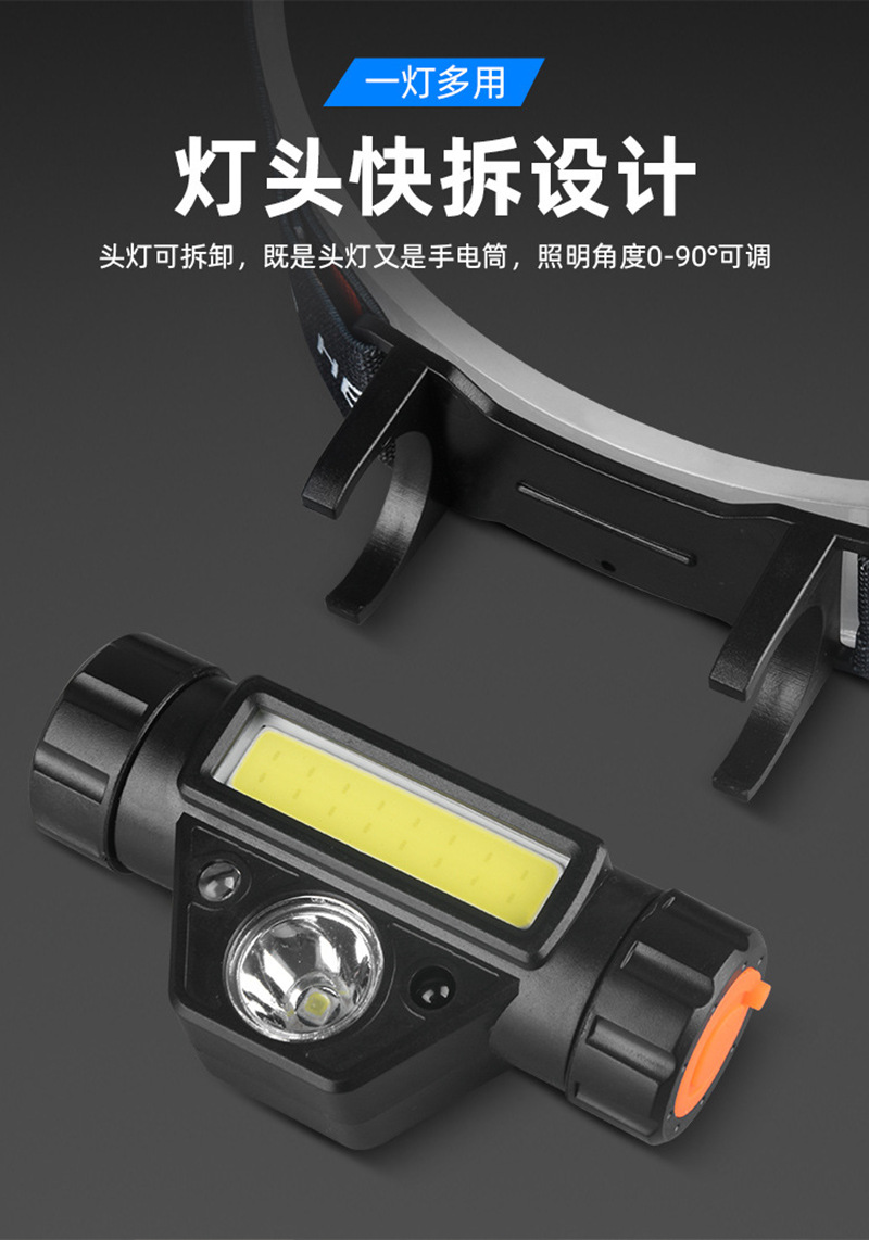 頭戴式強光頭燈USB充電長續航遠射戶外超輕小號多功能家用COB頭燈