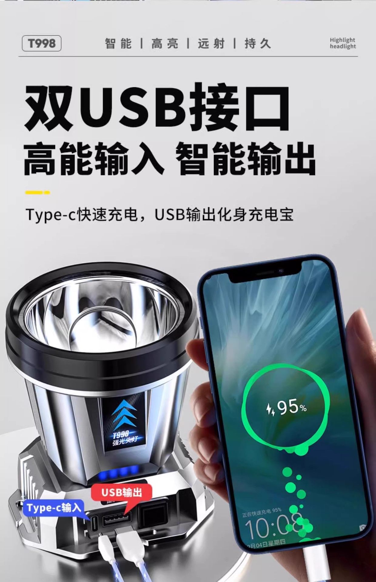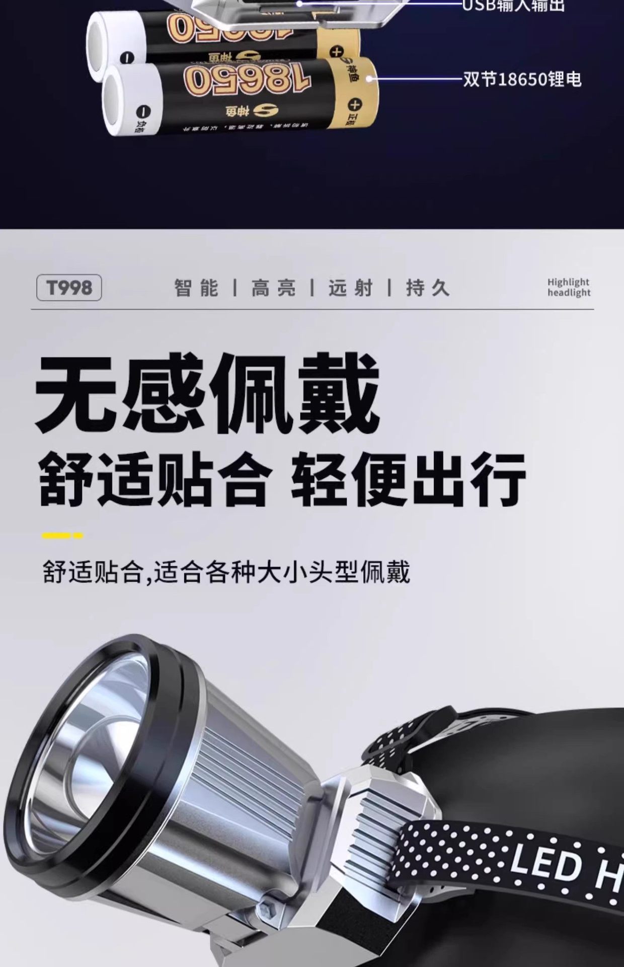 頭燈頭戴式強光充電超亮釣魚專用超長續航鋰電手電筒礦燈感應夜釣