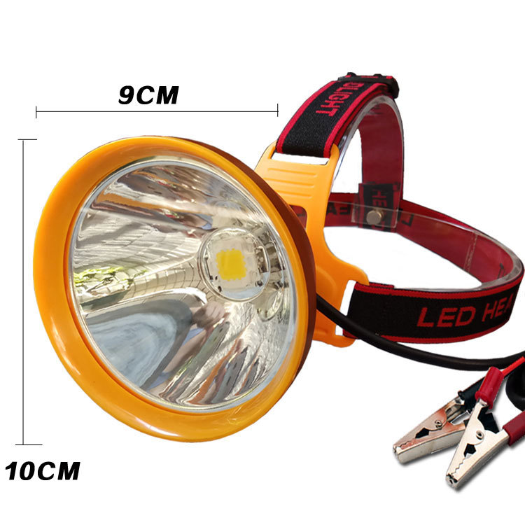 12v散光頭燈led強光超亮遠射大光圈抓黃鱔螞蟥黃光外接夾電瓶燈頭