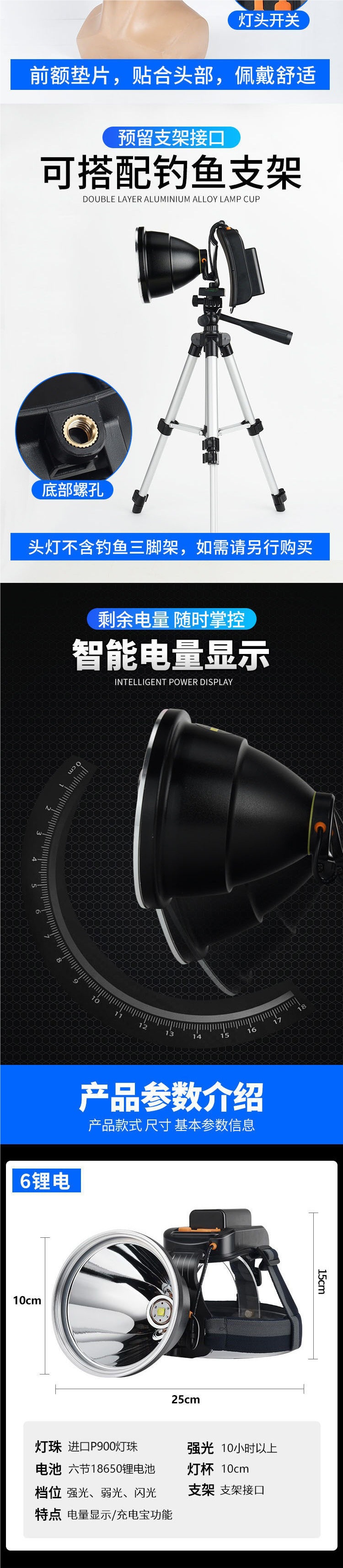 LED頭燈強光可充電P900光斑超長續航夜釣燈氙氣燈大礦燈電筒