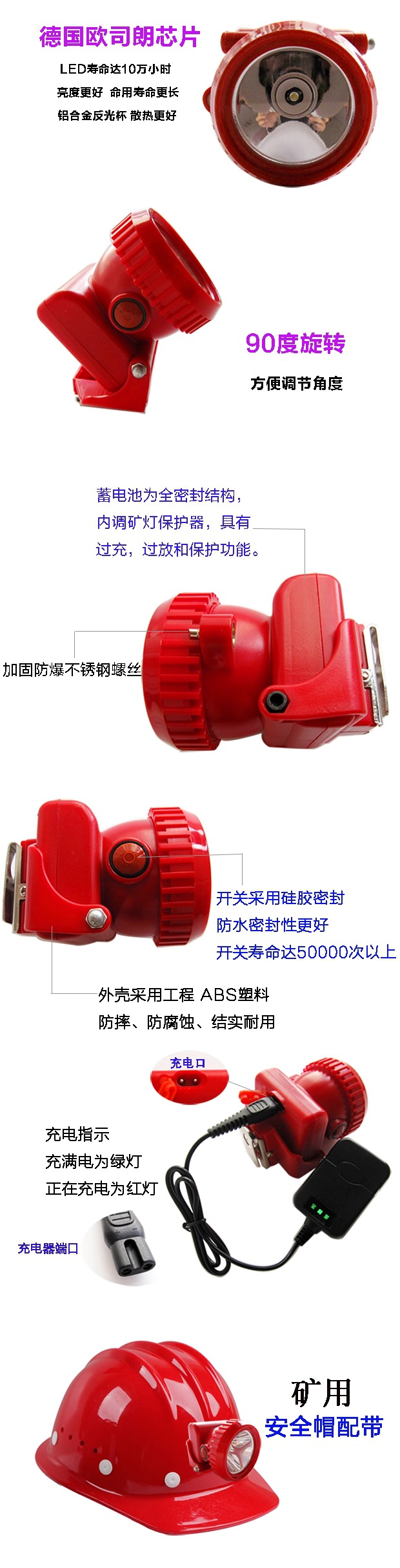 礦用專用礦燈強光超亮防水鋰電充電礦井安全帽家用頭戴頭燈帶鐵鉤