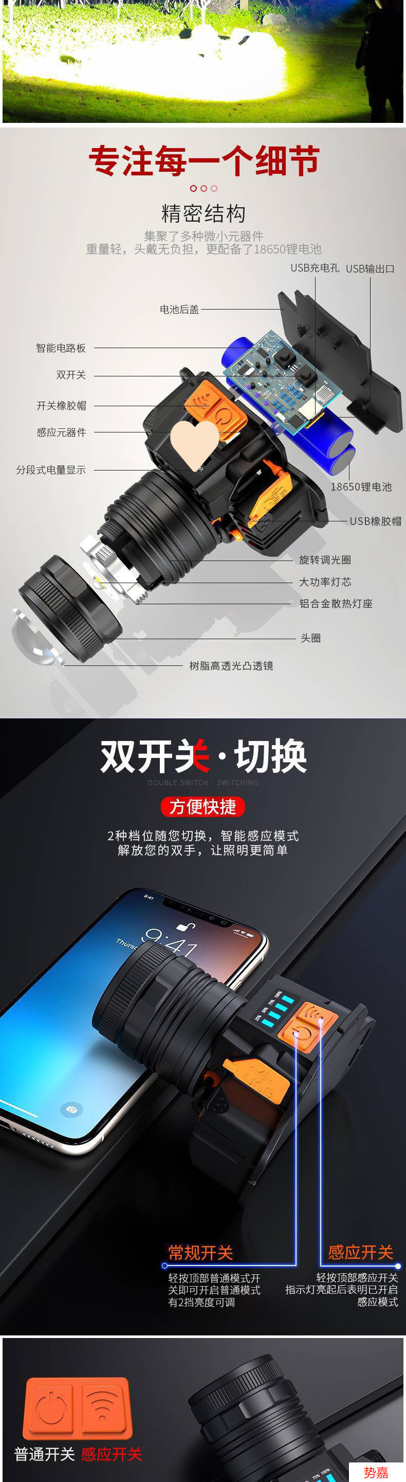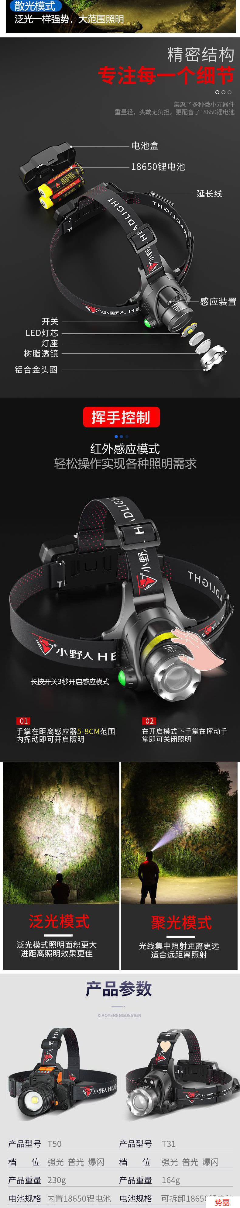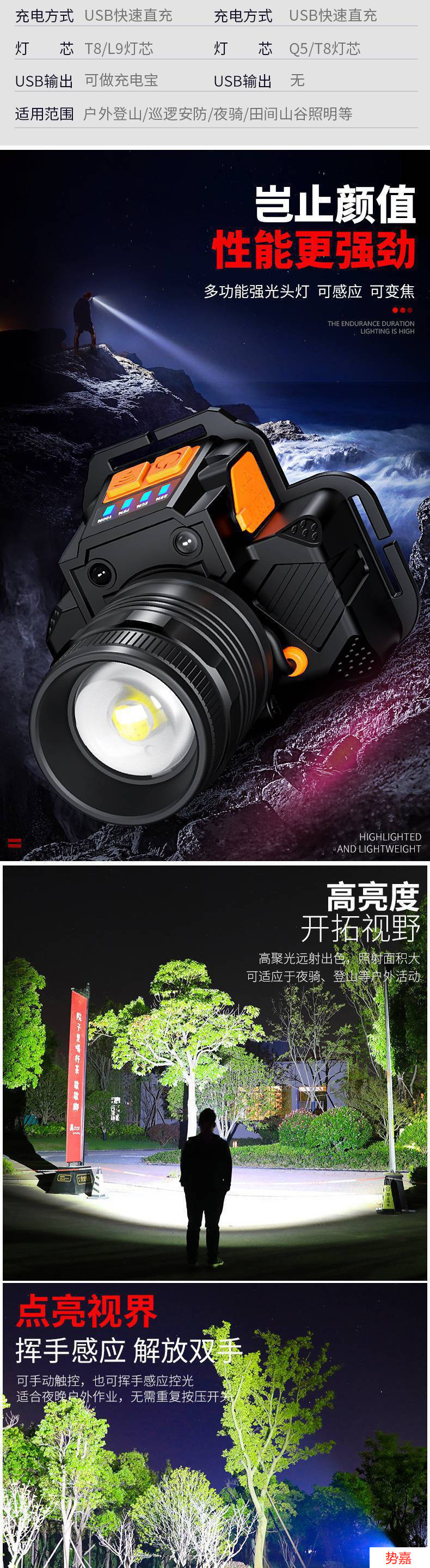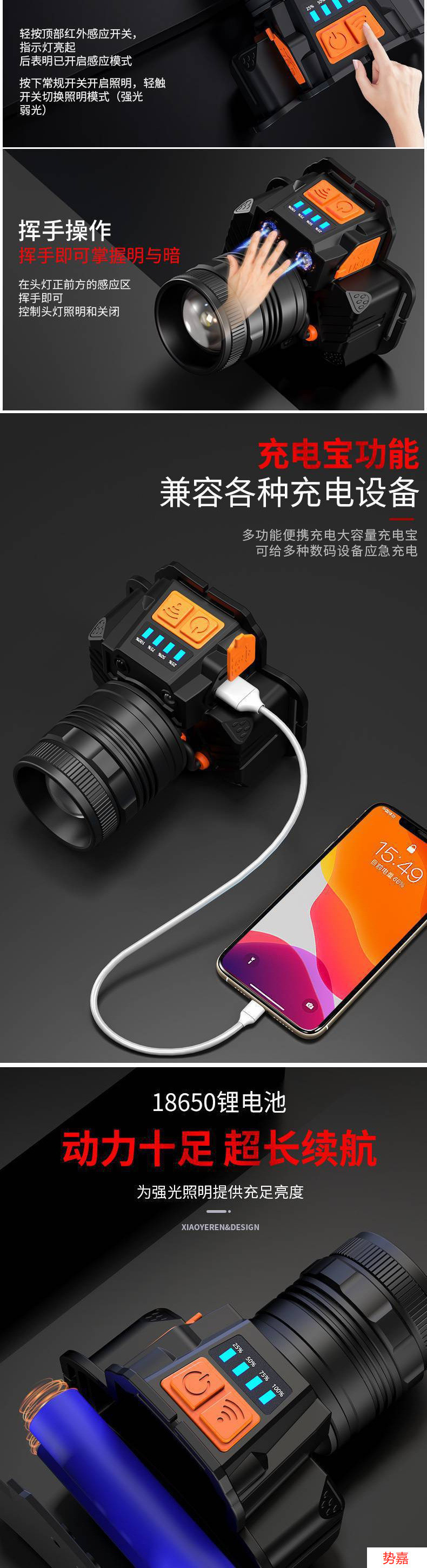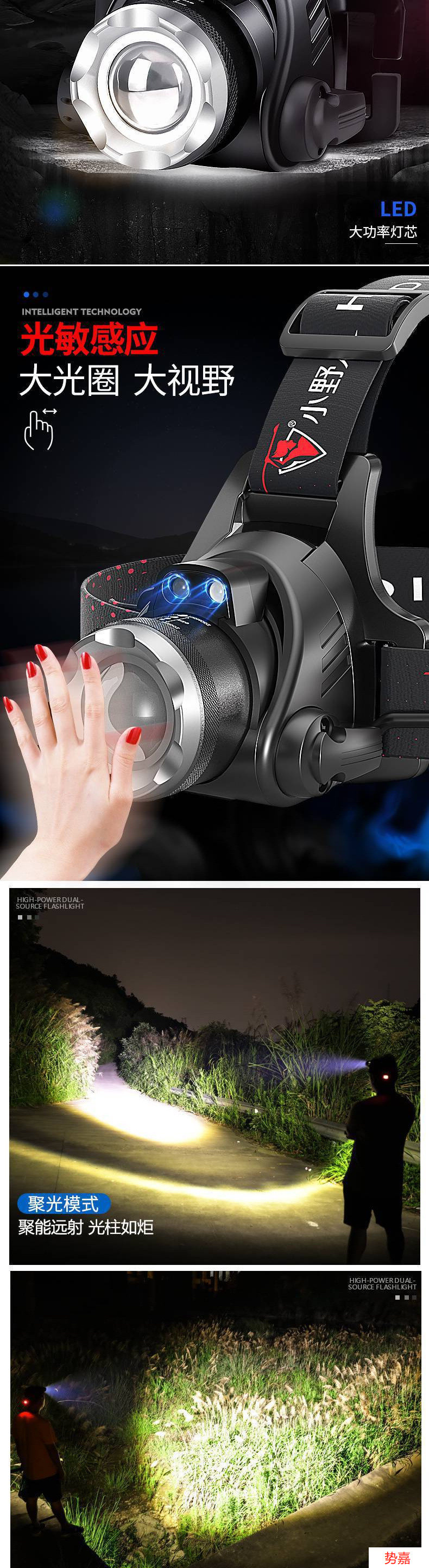 led頭燈強光可充電頭戴式手電筒野外超亮夜釣魚燈感應礦燈