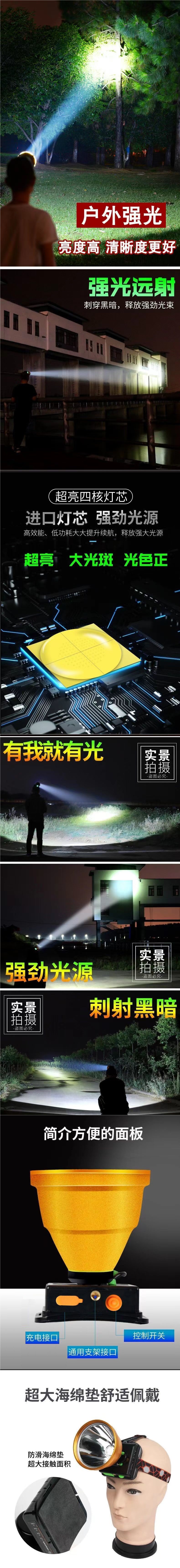 強光頭燈超長續航礦充電超亮頭戴式手電筒感應釣魚遠射夜釣