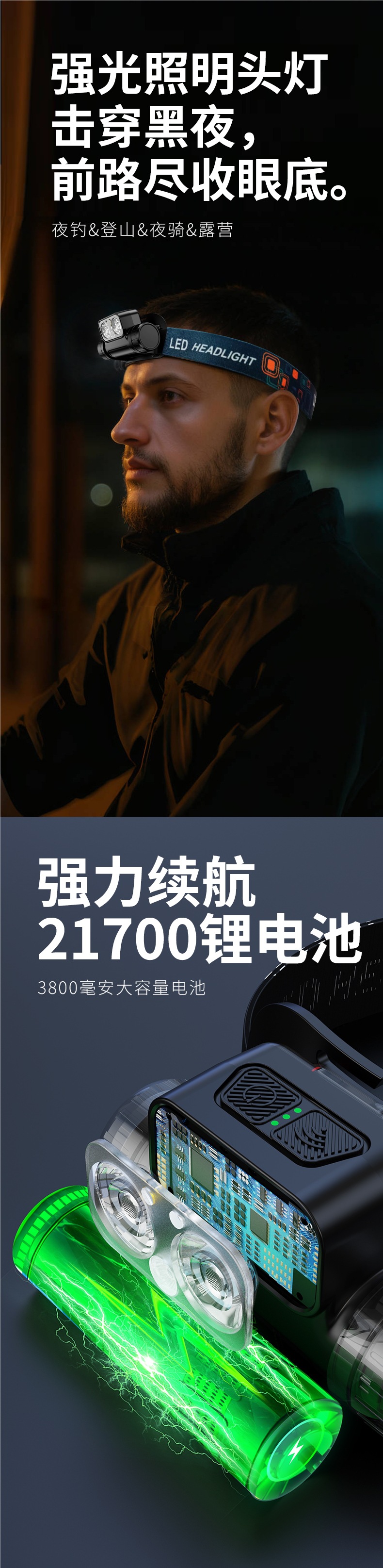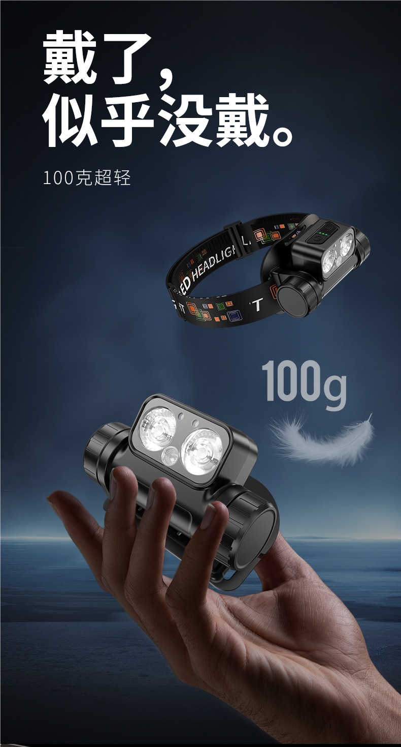 2025新款夜釣頭燈釣魚超長續航100小時紅光驅蚊頭戴式感應燈