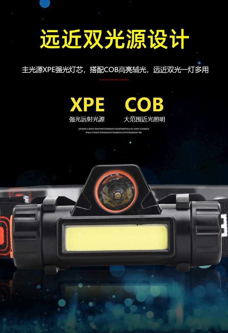 多功能USB充電頭燈戶外COB夜釣燈應急礦燈超亮遠射LED頭戴式頭燈