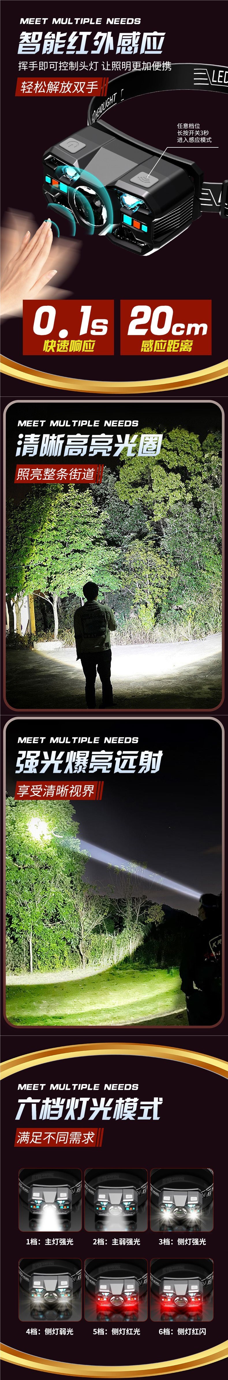 感應頭燈夜釣魚專用超輕頭戴式超長續航強光充電超亮戶外輕巧