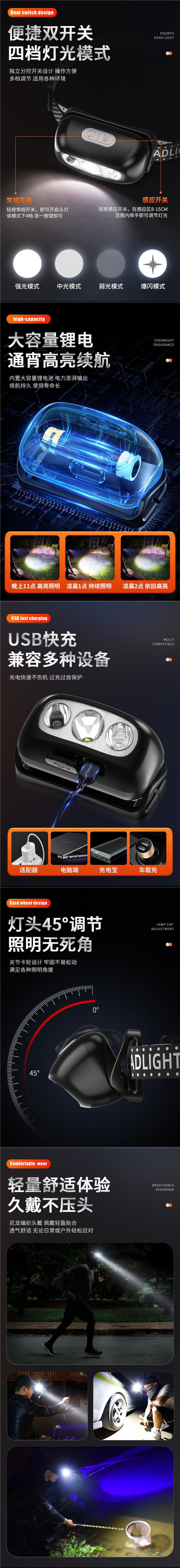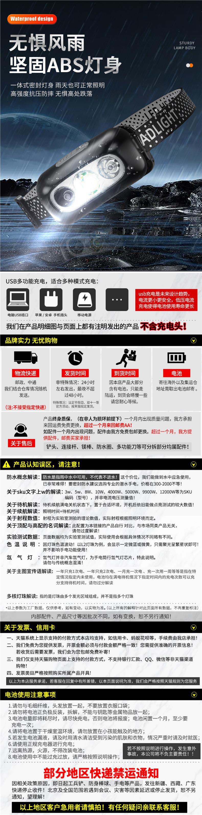 強光頭燈超亮充電頭戴式夜釣魚戶外照明超長續航感應小手電筒登山