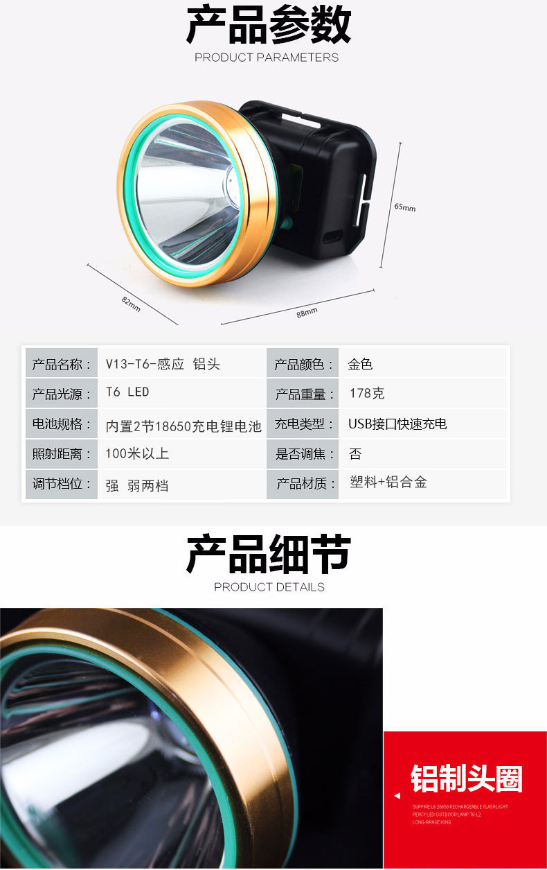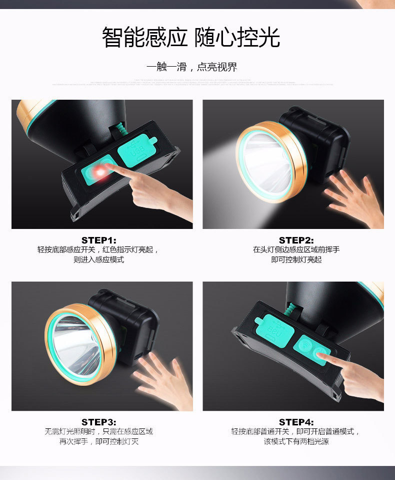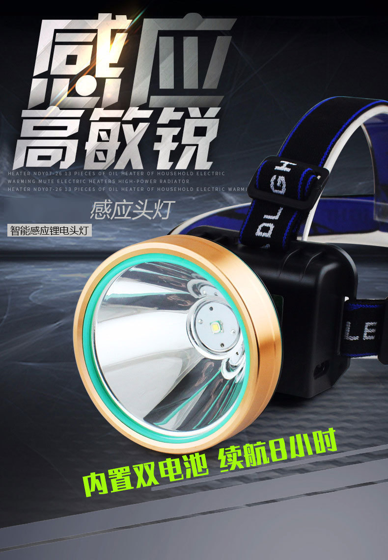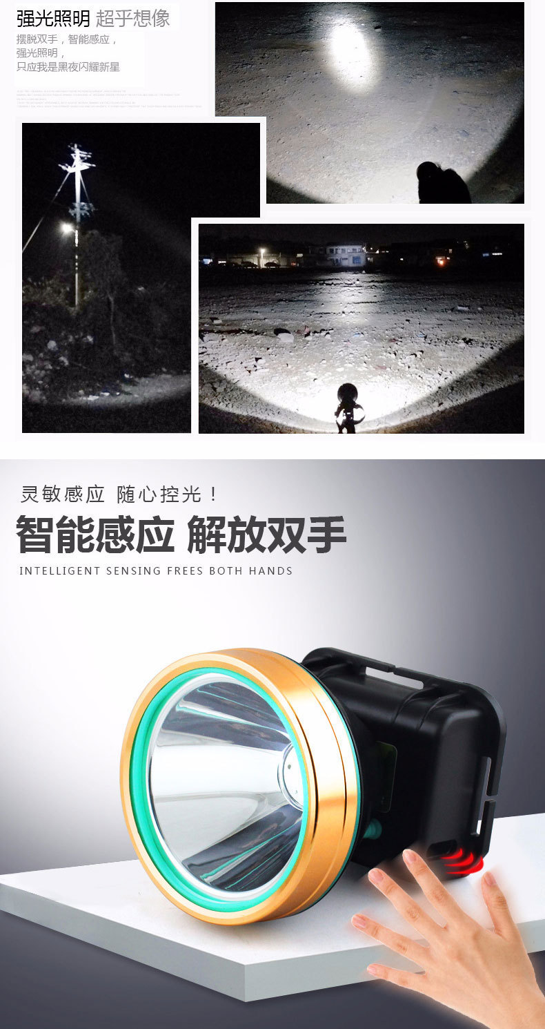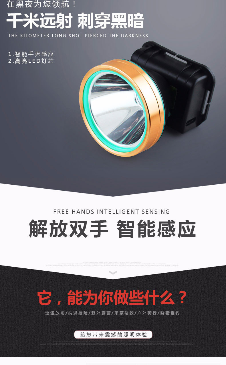 感應強光頭燈 USB充電紅外感應 可攜式鋰電頭燈 夜晚垂釣用品