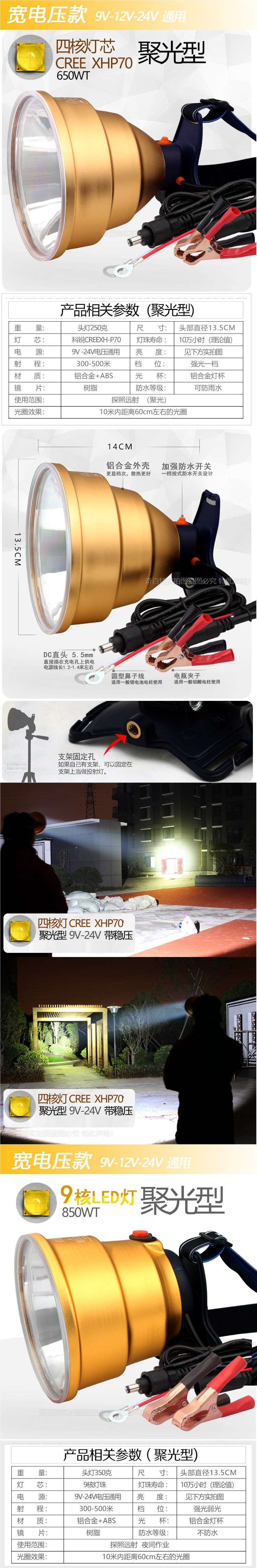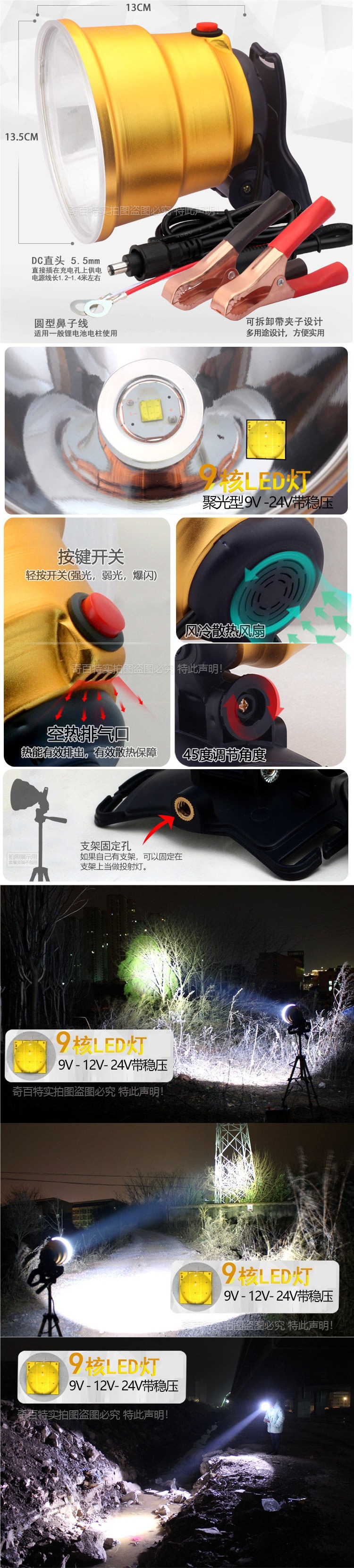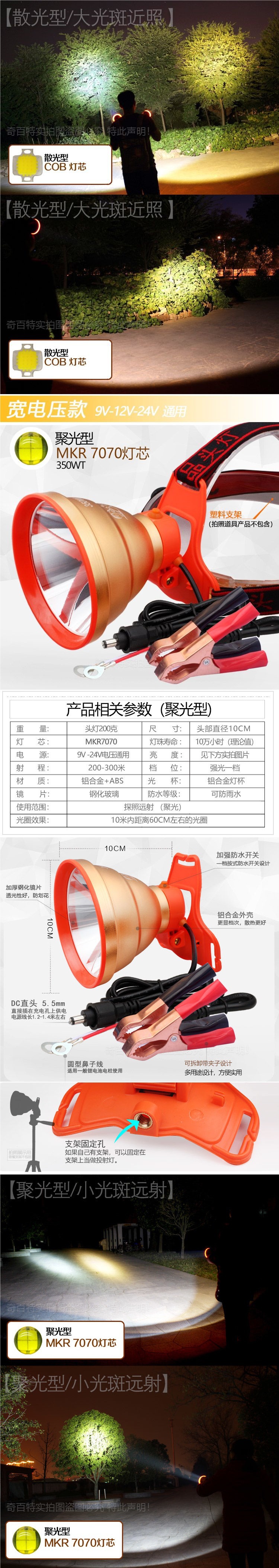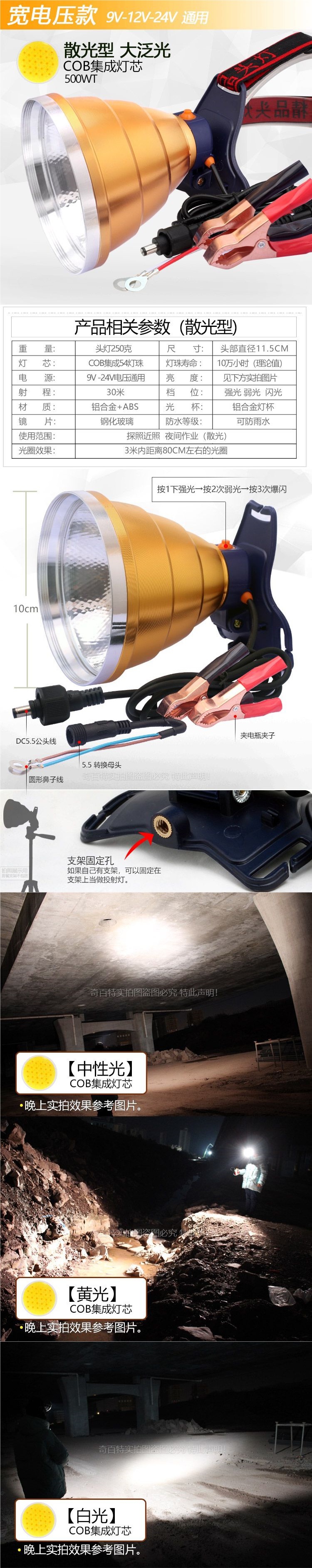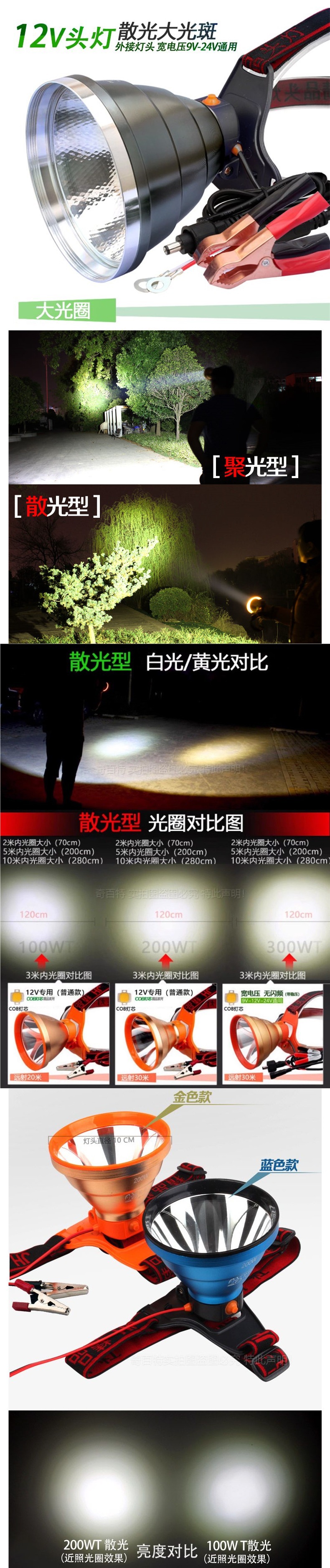 12V頭燈夾電瓶外接直流led強光大光圈散光釣魚燈頭戴式遠射燈頭