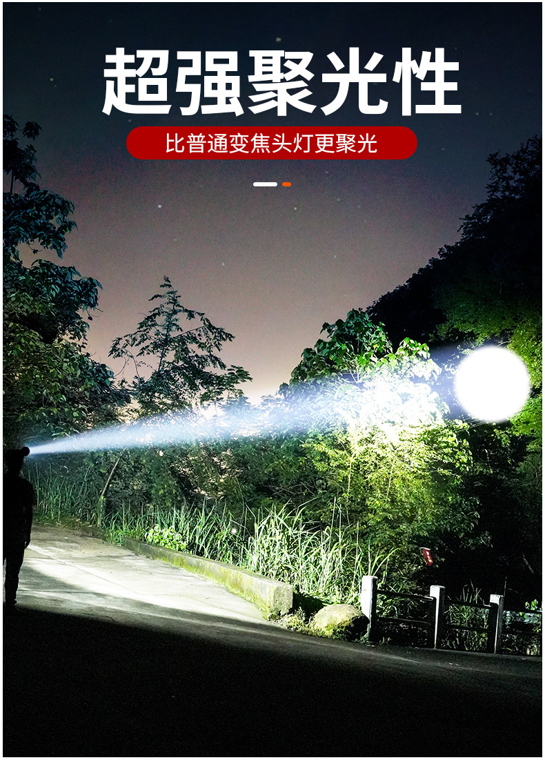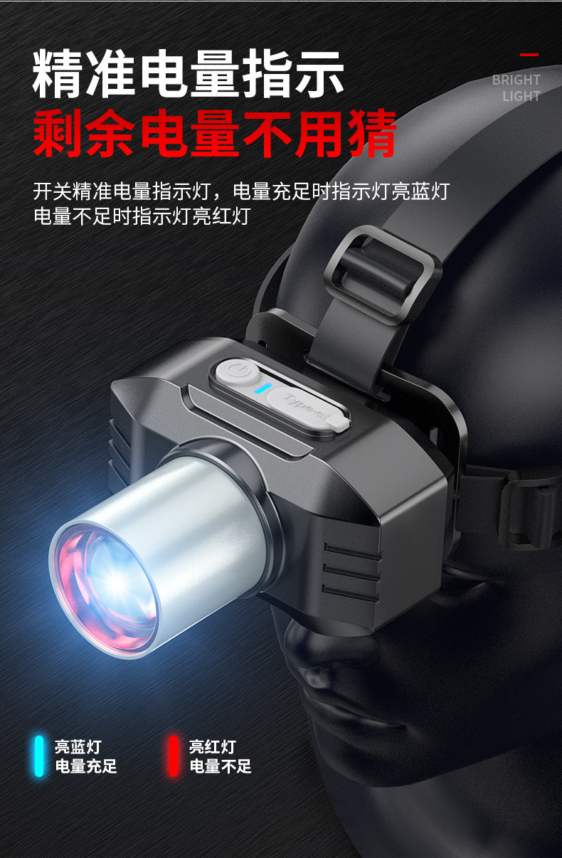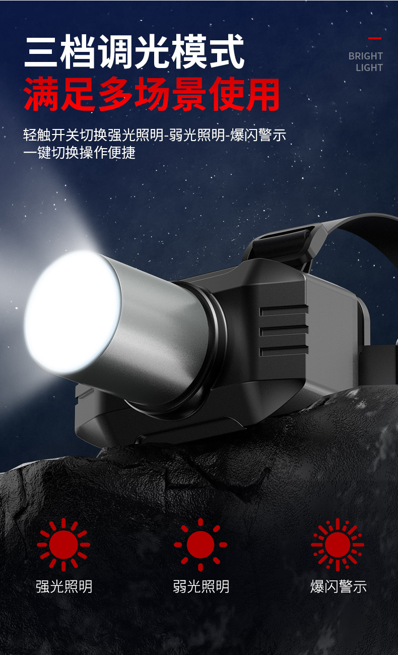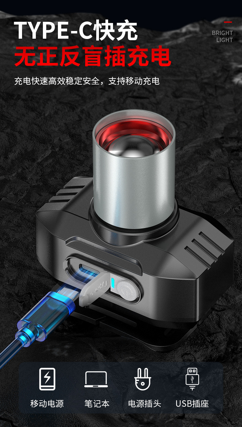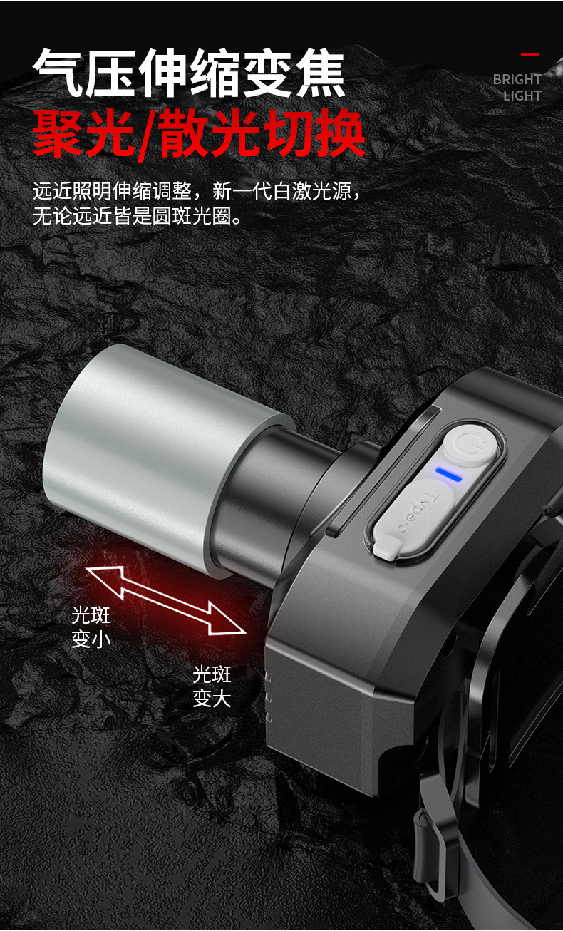 強光頭燈變焦白黃雙光燈高亮雷射USB充電長續航夜釣頭燈