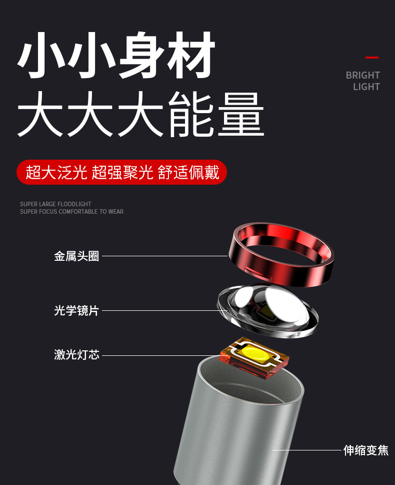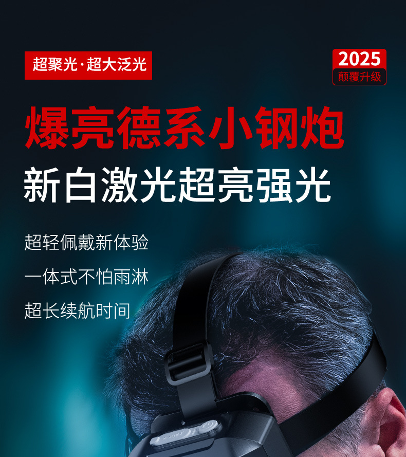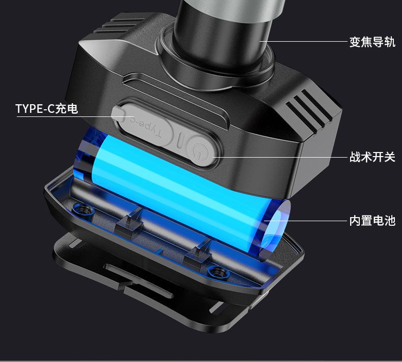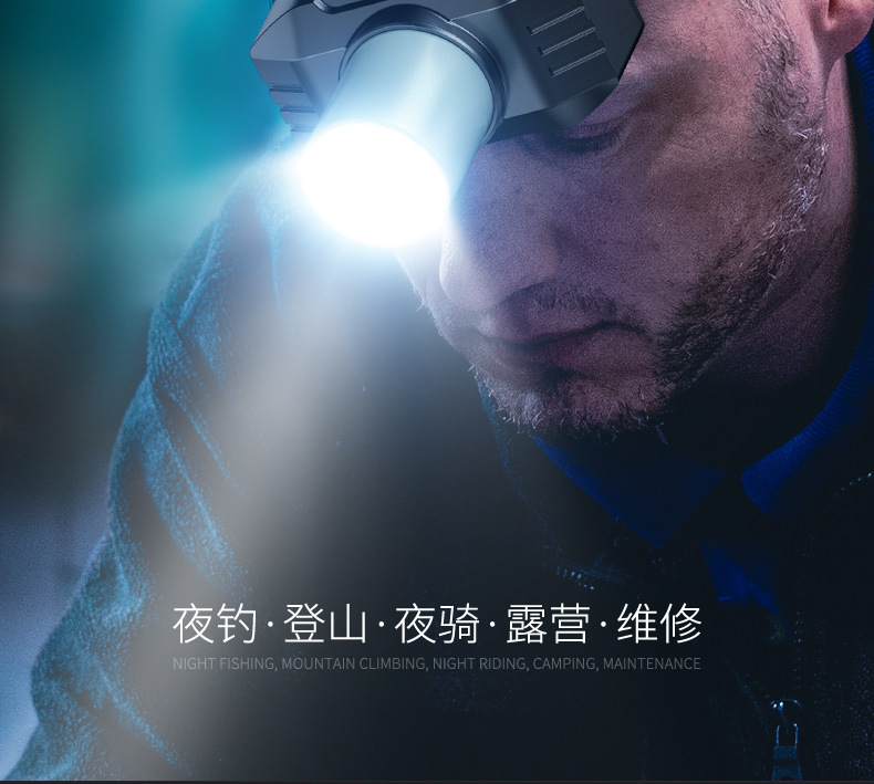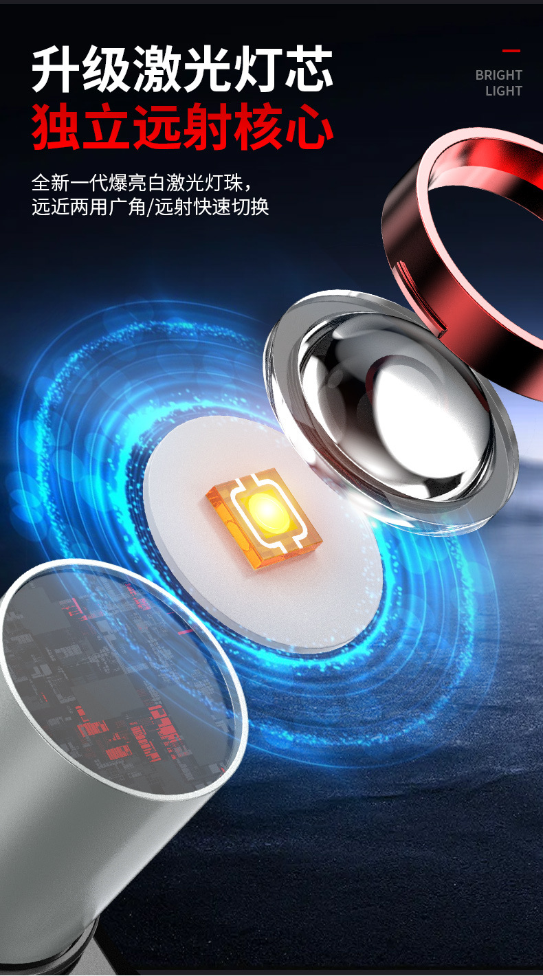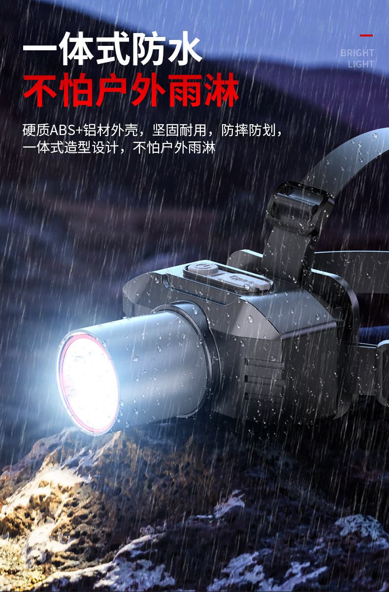 強光頭燈變焦白黃雙光燈高亮雷射USB充電長續航夜釣頭燈