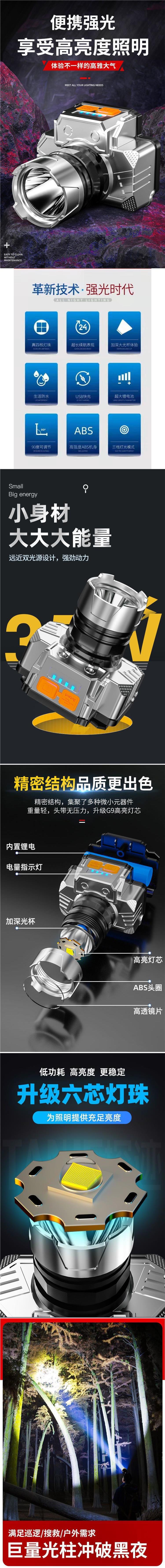 LED頭燈強光超亮頭戴式手電筒戶外家用遠射充電夜釣魚小氙氣
