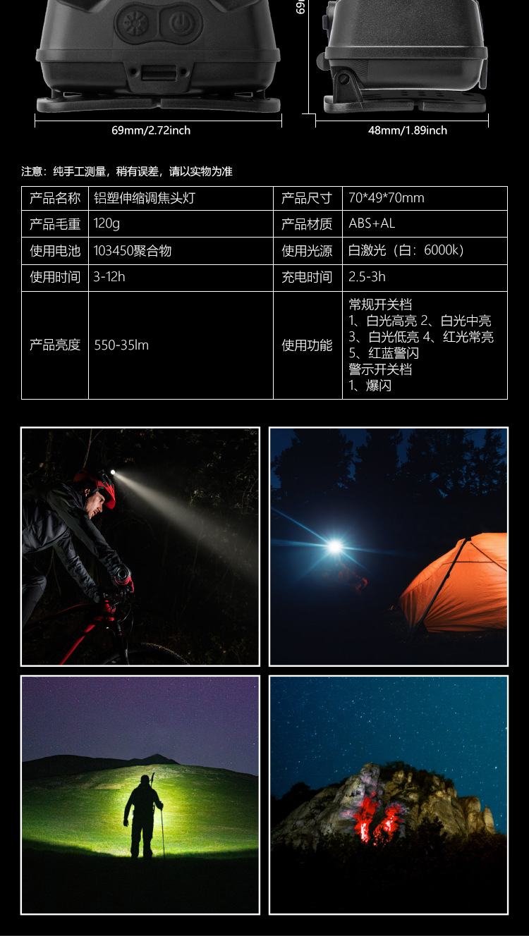 | 規格 | 鋁塑伸縮調焦頭燈 |