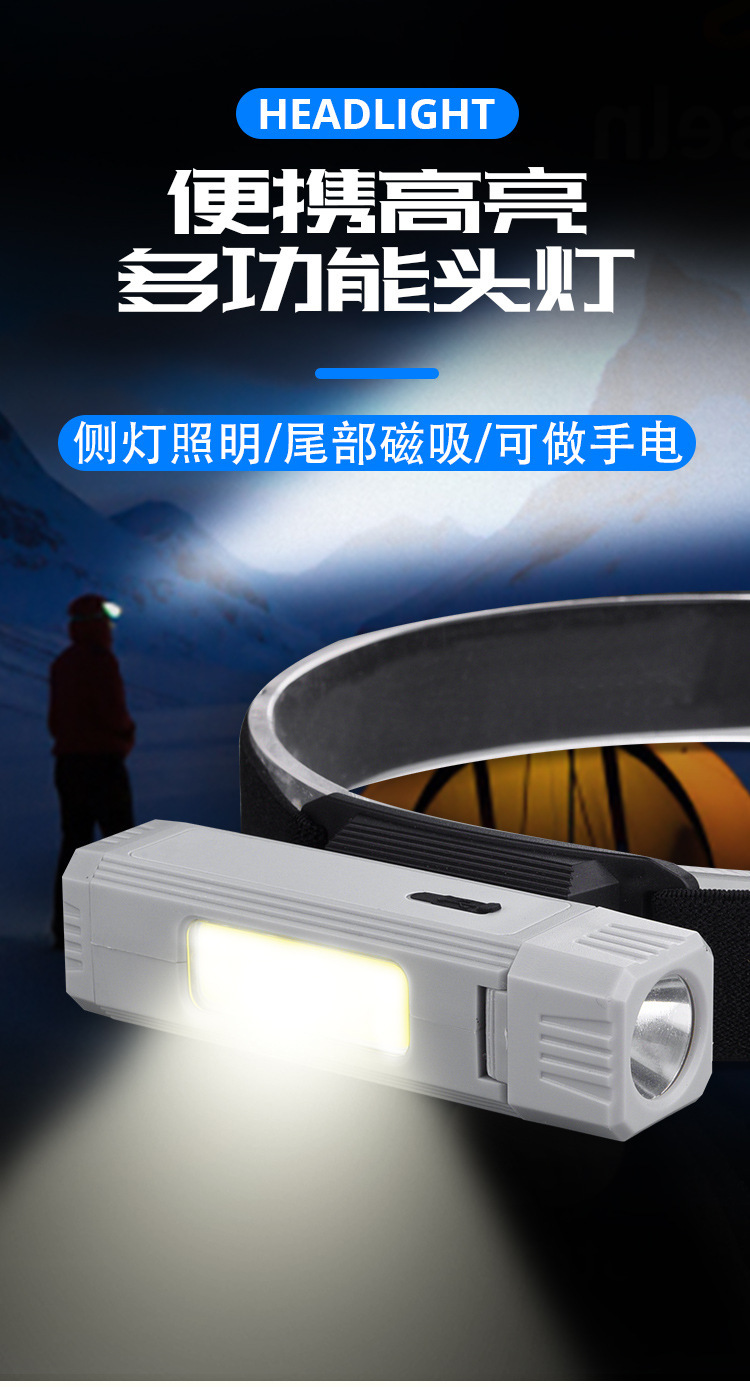 多功能兩用強光高亮防水磁吸戶外運動頭燈手電筒折疊轉向便捷