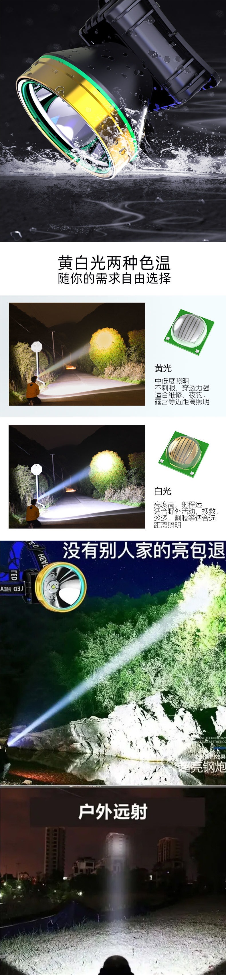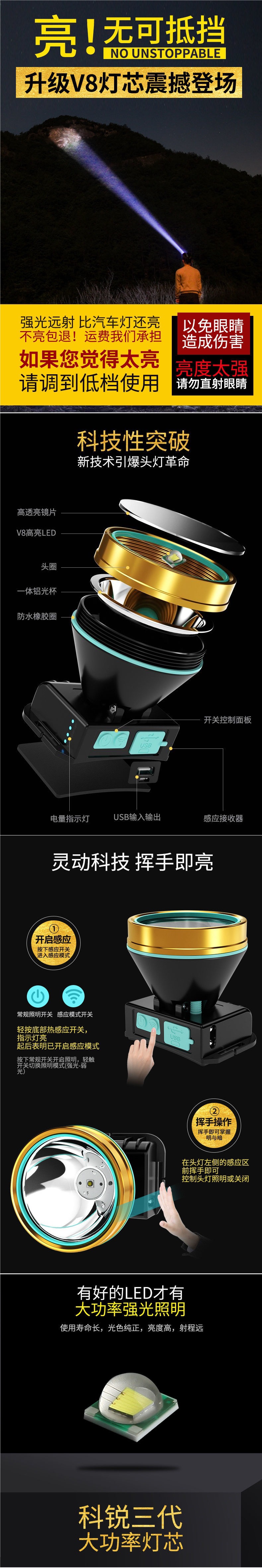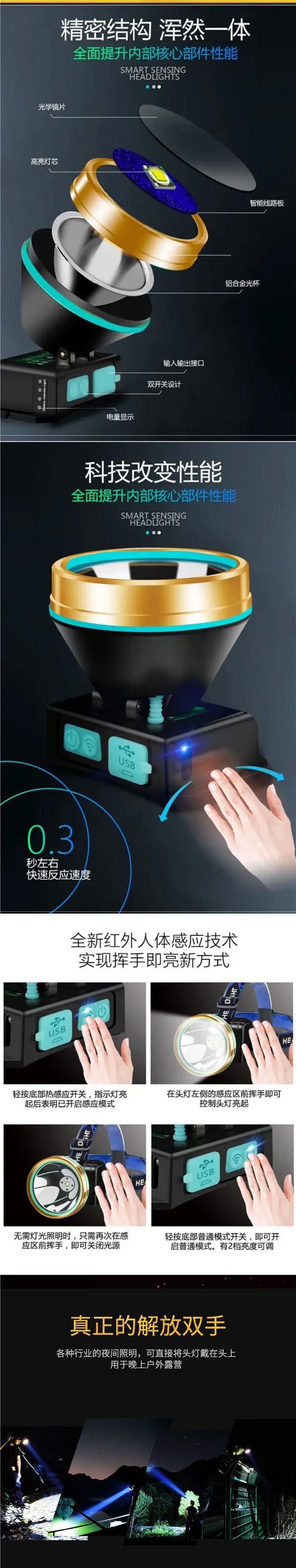 夜釣魚頭燈強光充電超亮頭戴式戶外超長續航手電筒礦燈輕感應專用