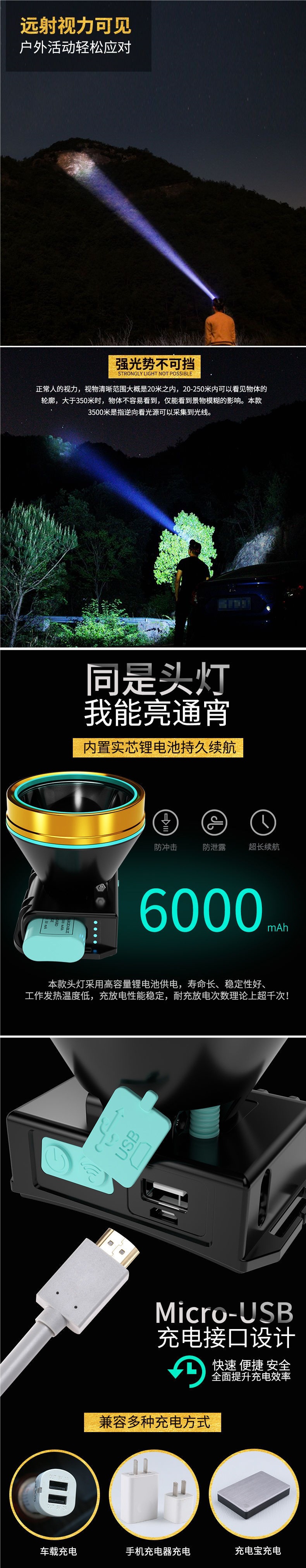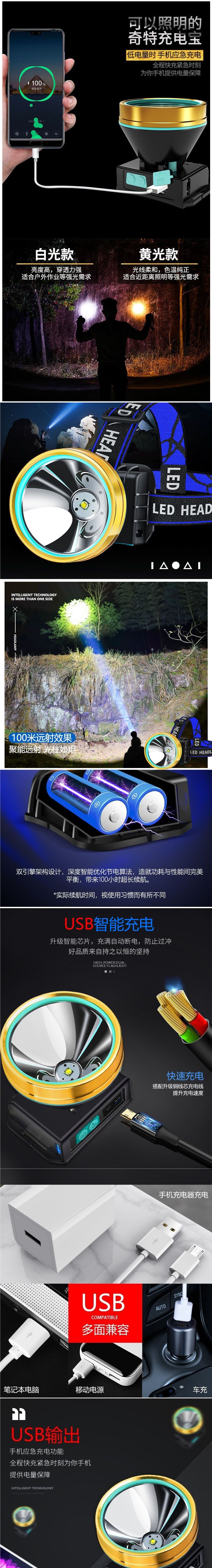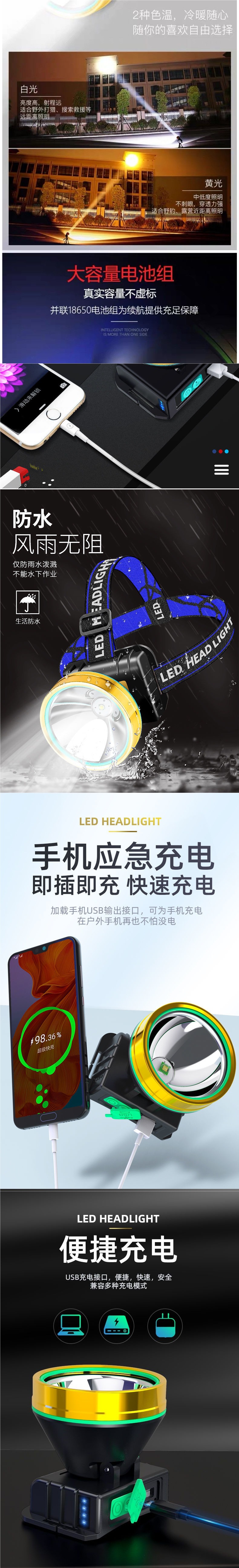 夜釣魚頭燈強光充電超亮頭戴式戶外超長續航手電筒礦燈輕感應專用
