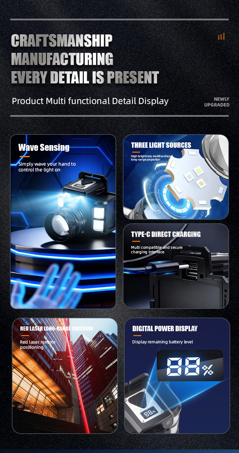 可充電式強光超亮頭戴式戶外小手電筒感應夜釣魚長續航礦燈led燈