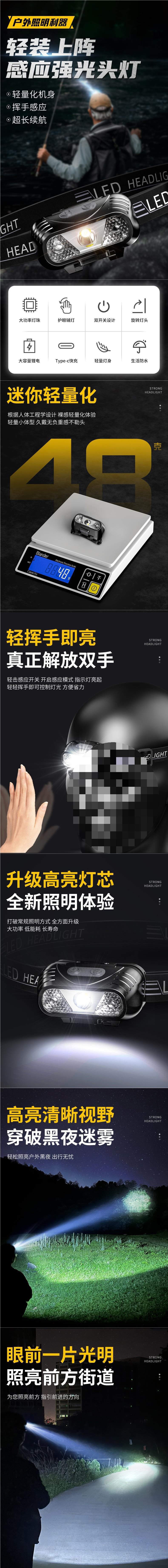 夜釣魚頭燈強光充電超亮頭戴式超長續航手電筒礦燈輕小號