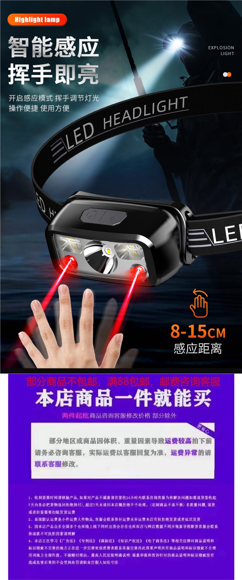 | 顔色 | 頂配版-99800w 可感應 續航80小時 帶紅光警示燈 |